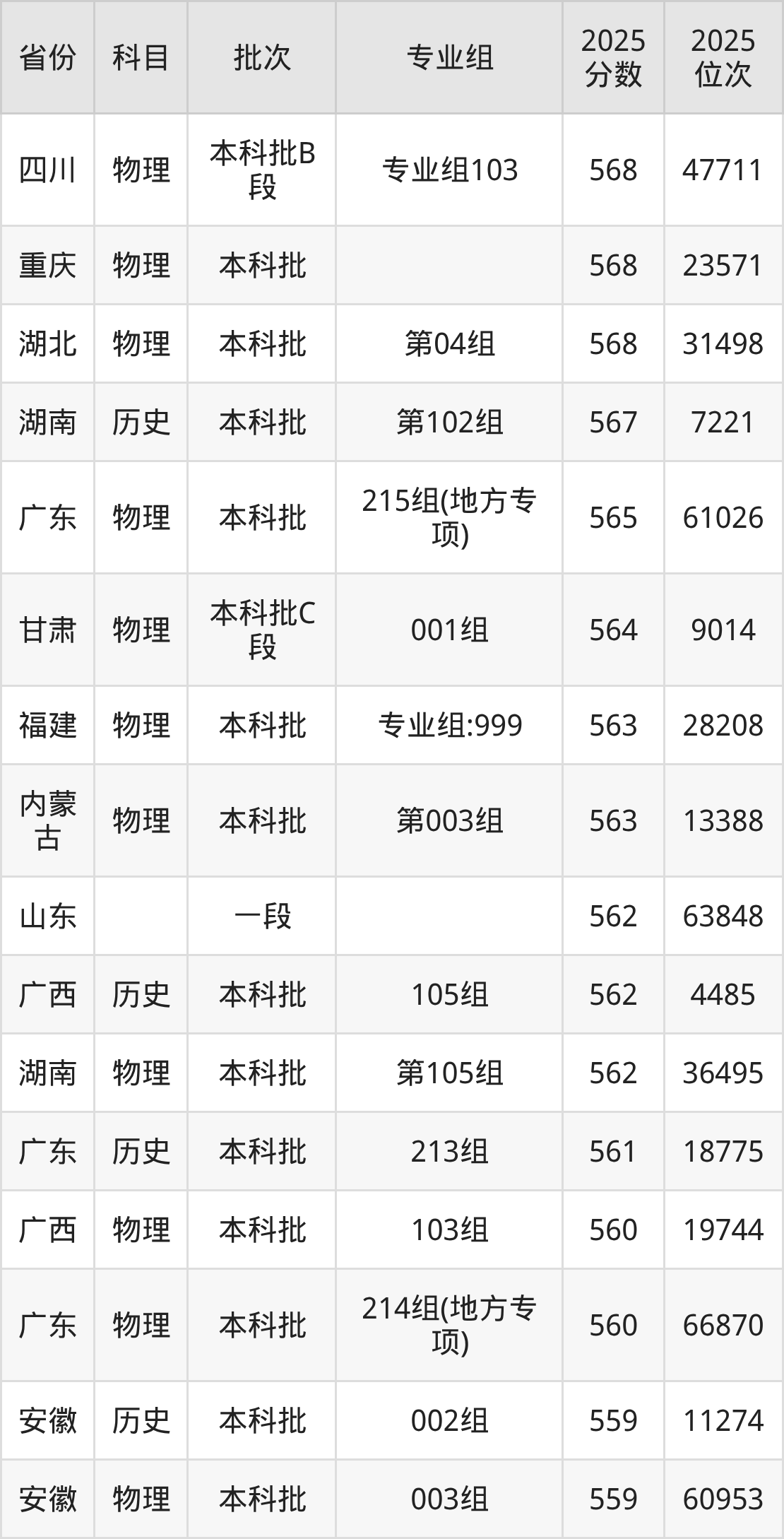 下面是2025年广州中医药大学在全国各省录取最低分数据及位次,各位考生也可作为一个参考。