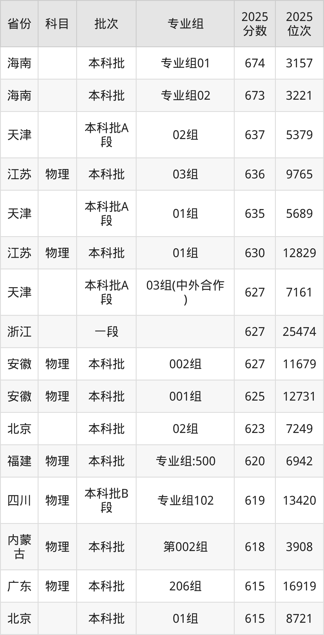 2025年大连理工大学(盘锦校区)全国录取分数线539分到674分,录取最高在海南(专业组01)、录取最低在宁夏(001专业组)。