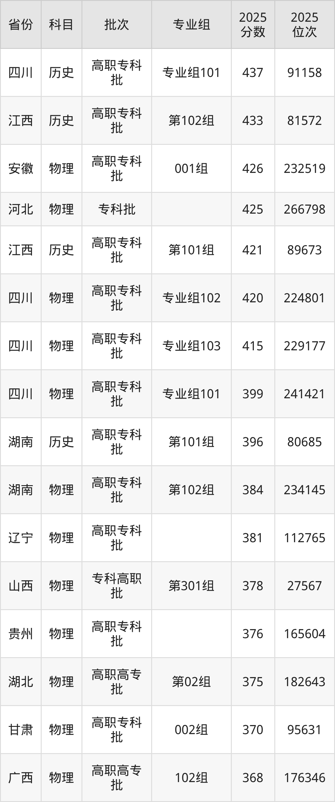 2025年宜宾职业技术学院专业录取分数线是381分,招生专业为机电一体化技术。本文将展示宜宾职业技术学院专业最低分数线及位次,供2026届高考生参考。