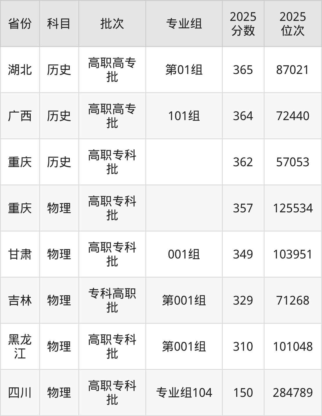 下面是2025年宜宾职业技术学院在全国各省录取最低分数据及位次,各位考生也可作为一个参考。