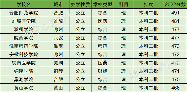 高考100小编整理出了2022年安徽省分数线最高的二本大学,理科中分数线最高的3所二本大学包括合肥师范学院(491分)、蚌埠医学院(481分)、滁州学院(477分)