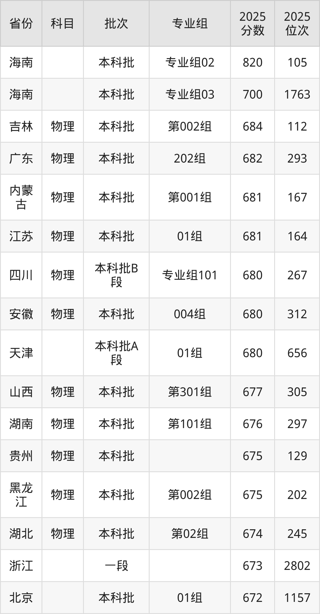 2025年复旦大学上海医学院全国录取分数线545分到820分,录取最高在海南(专业组02)、录取最低在新疆(文科)。