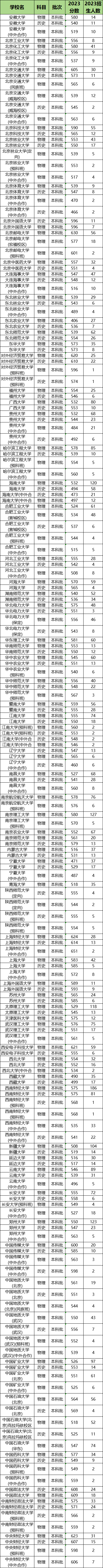 下表为2023年全国其他211大学在重庆市的招生情况