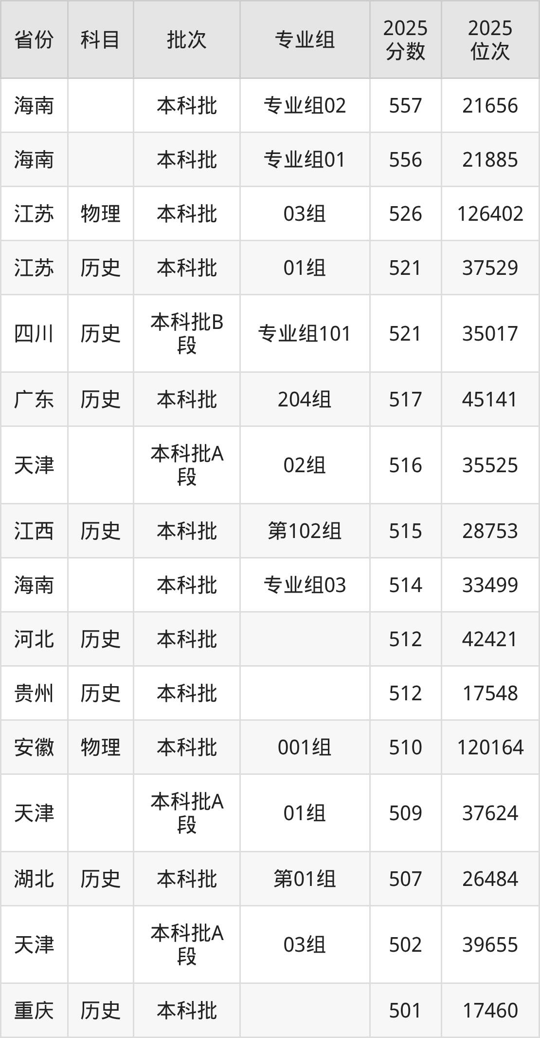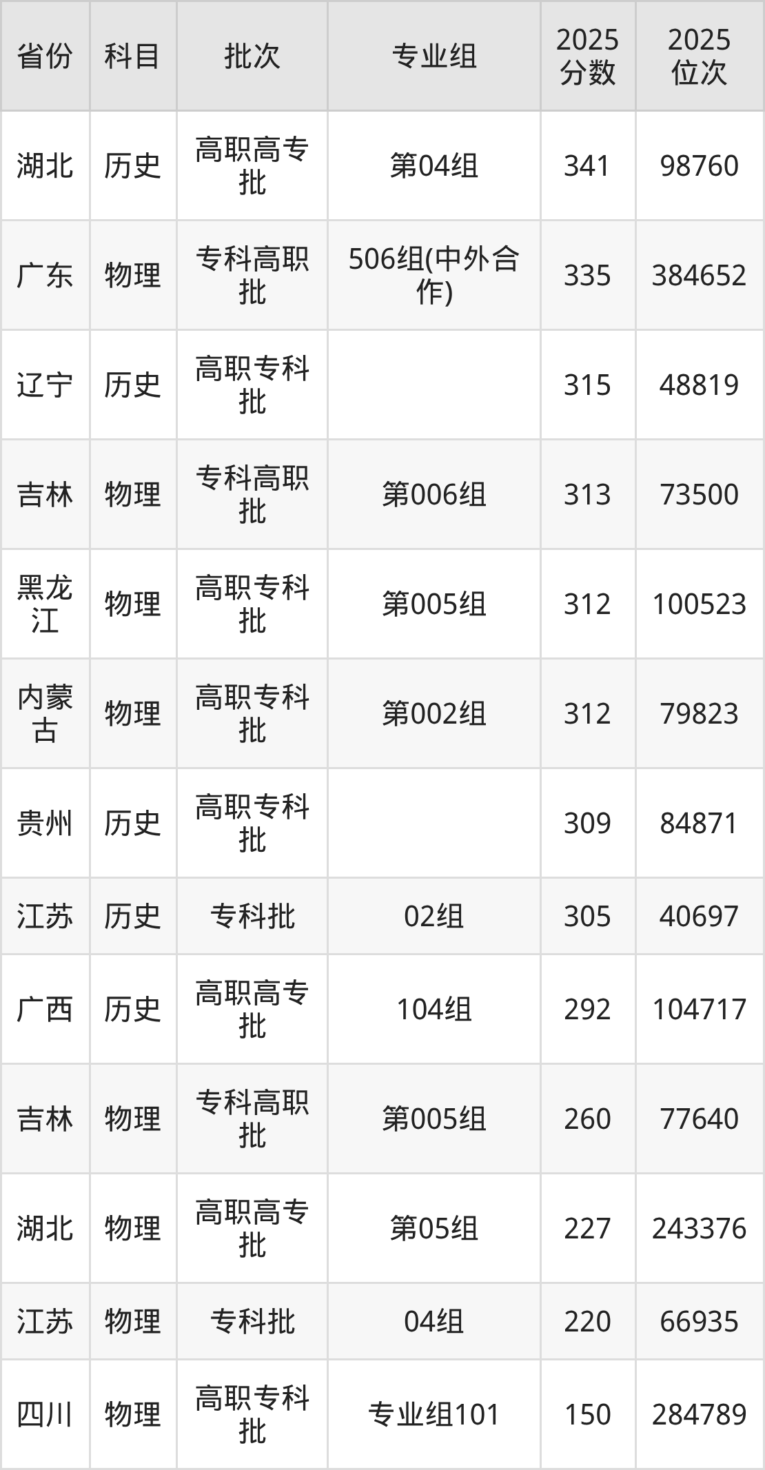 2025年河北科技工程职业技术大学全国录取分数线150分到557分,录取最高在海南(专业组02)、录取最低在四川(专业组101)。