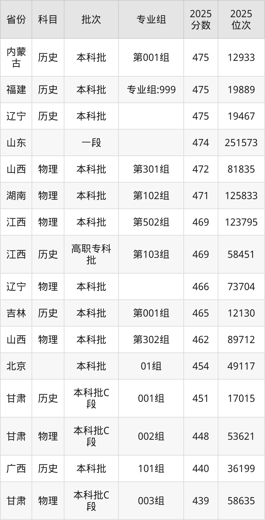 参考2025年山东省高考招录数据,按照分数线从高到低依次为大家展示河北科技工程职业技术大学各个专业录取分数线。