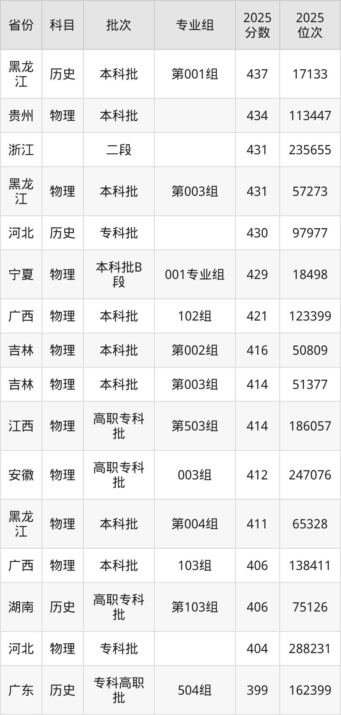 下面是2025年河北科技工程职业技术大学在全国各省录取最低分数据及位次,各位考生也可作为一个参考。