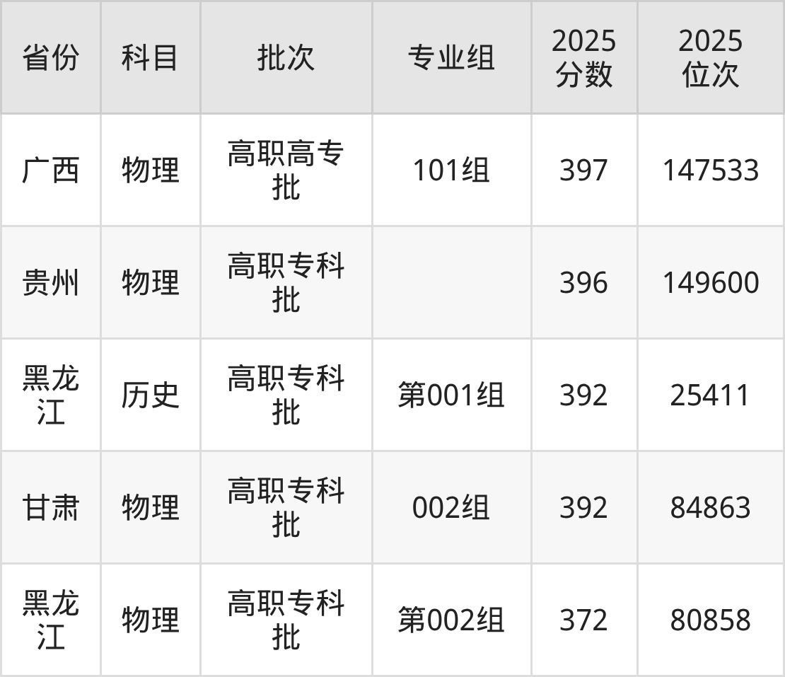 参考2025年贵州省高考招录数据,按照分数线从高到低依次为大家展示浙江邮电职业技术学院各个专业录取分数线。