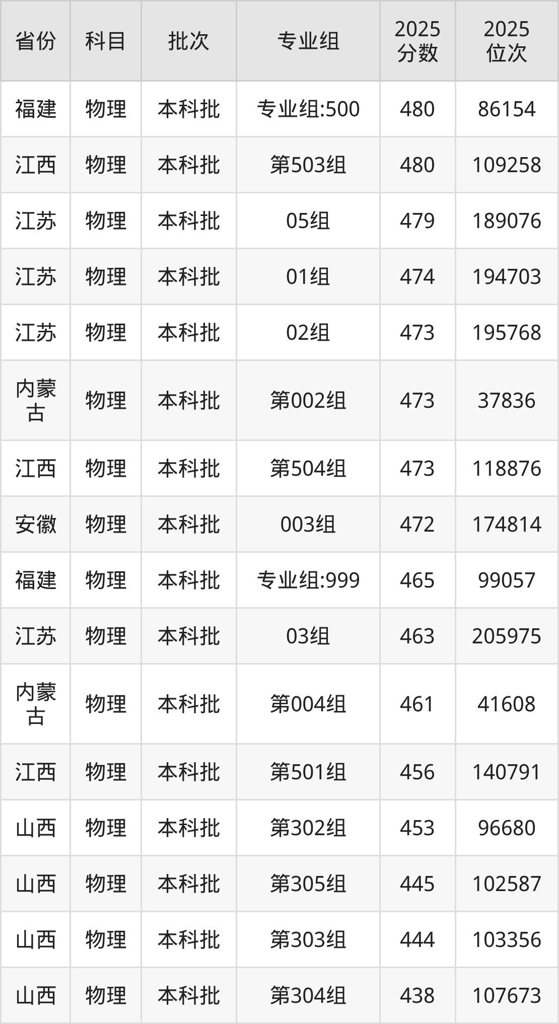 参考2025年内蒙古自治区高考招录数据,按照分数线从高到低依次为大家展示电子科技大学中山学院各个专业录取分数线。