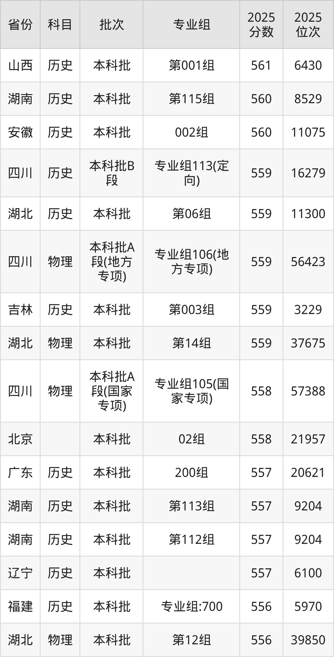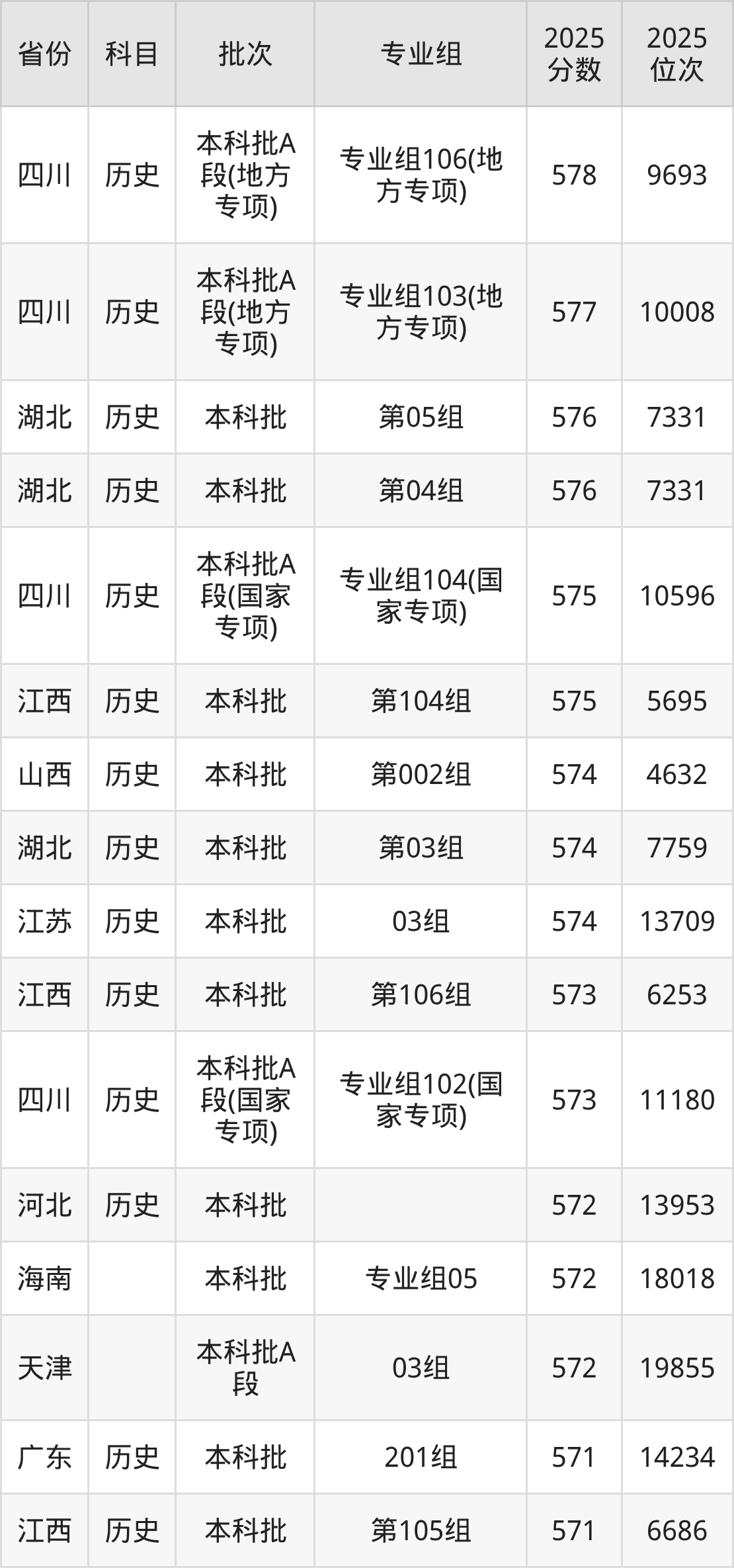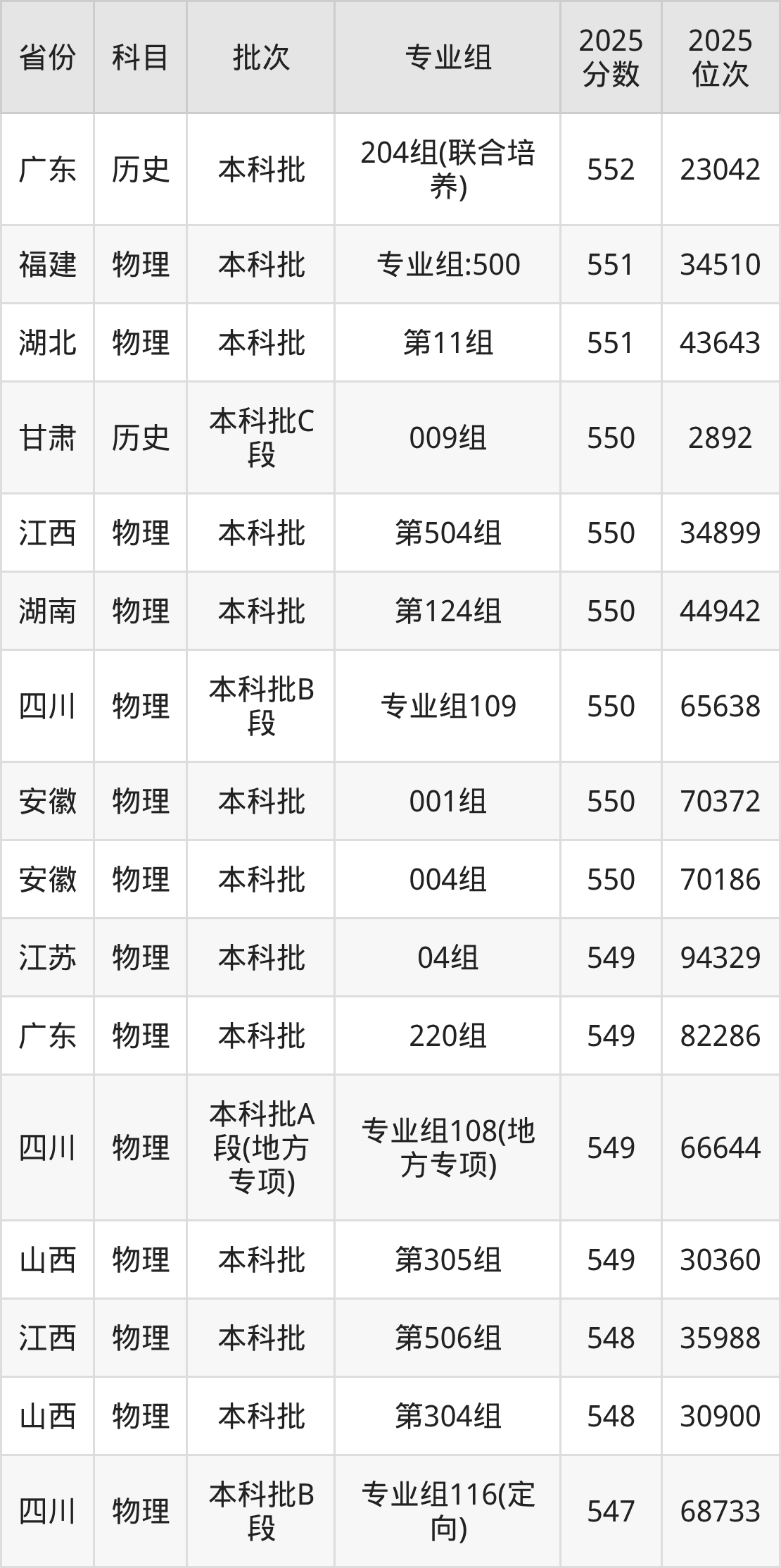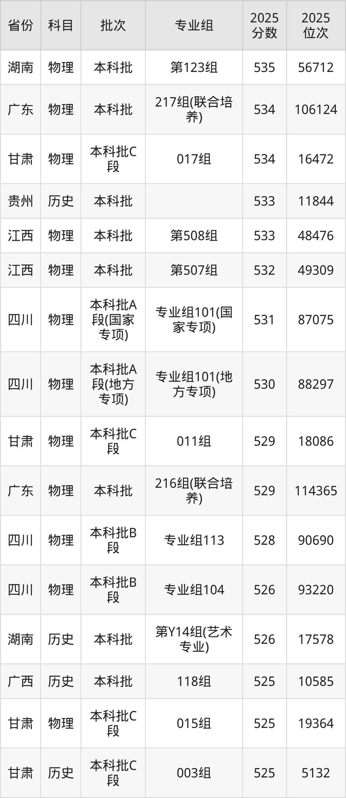 参考2025年山东省高考招录数据,按照分数线从高到低依次为大家展示四川师范大学各个专业录取分数线。