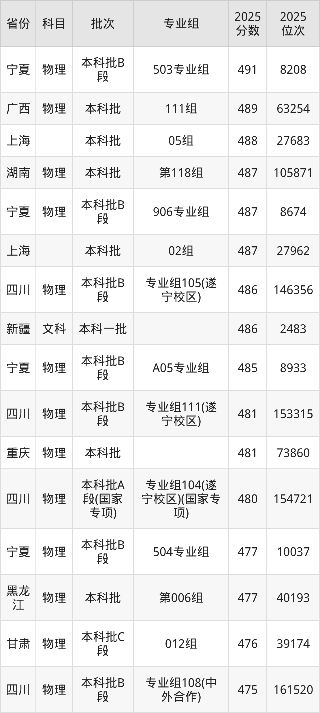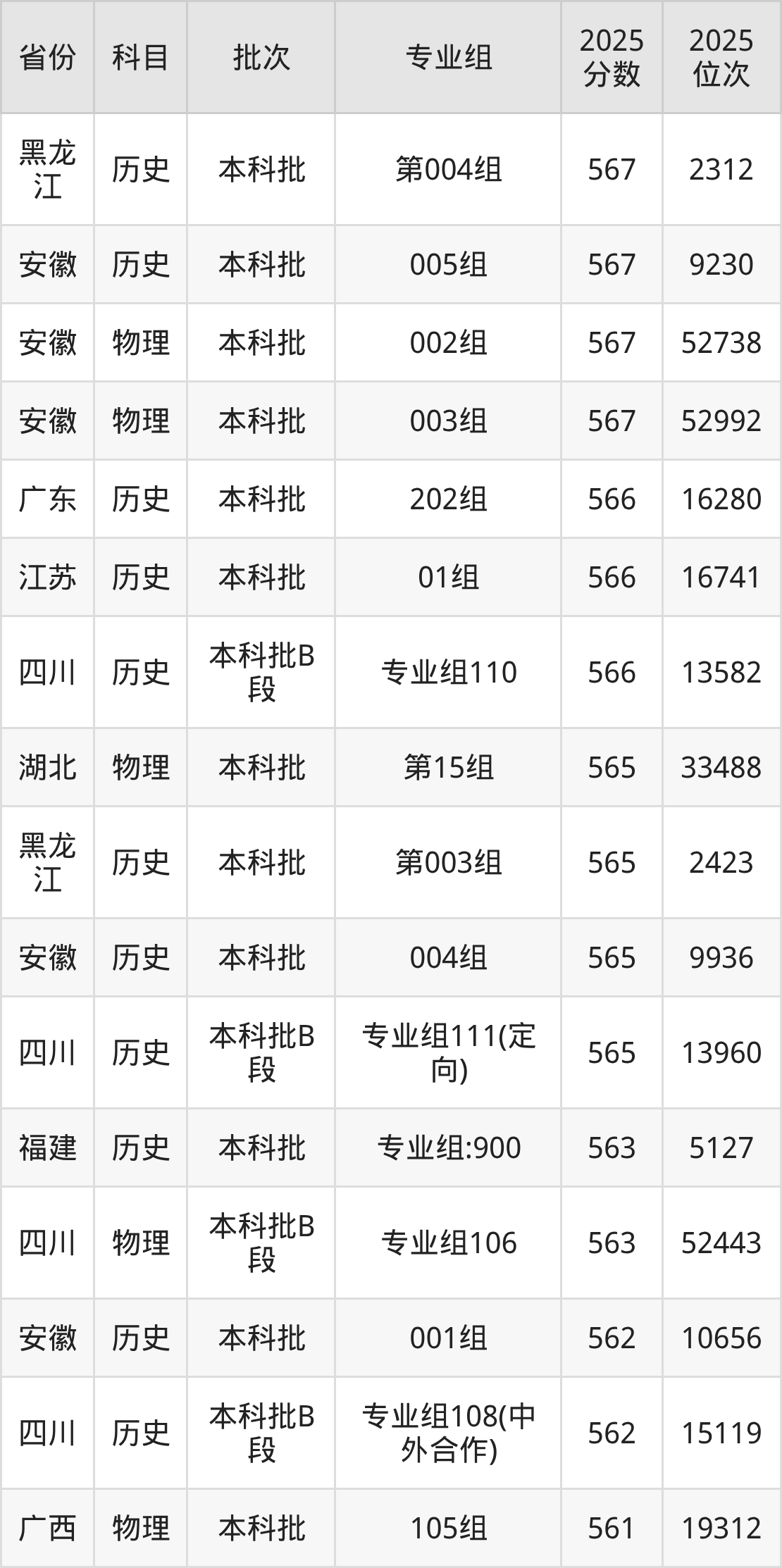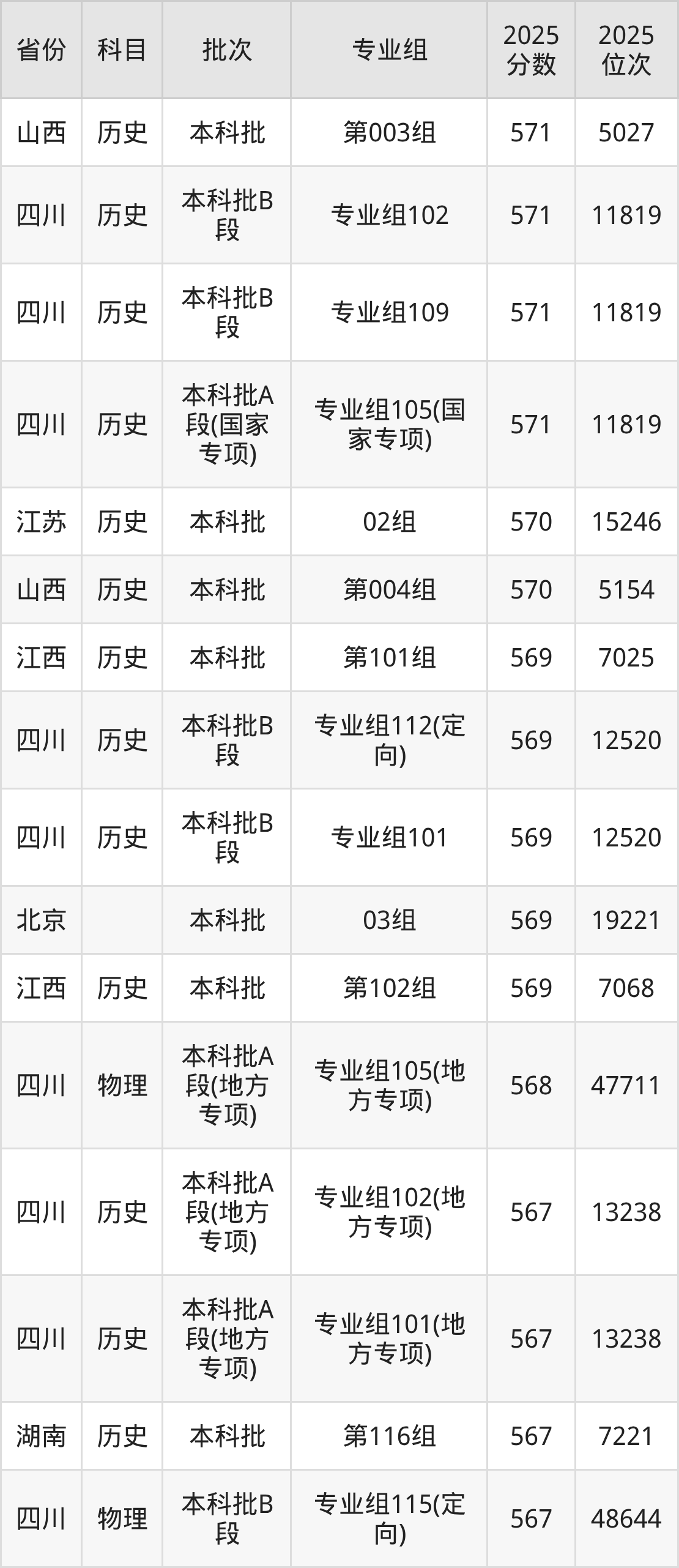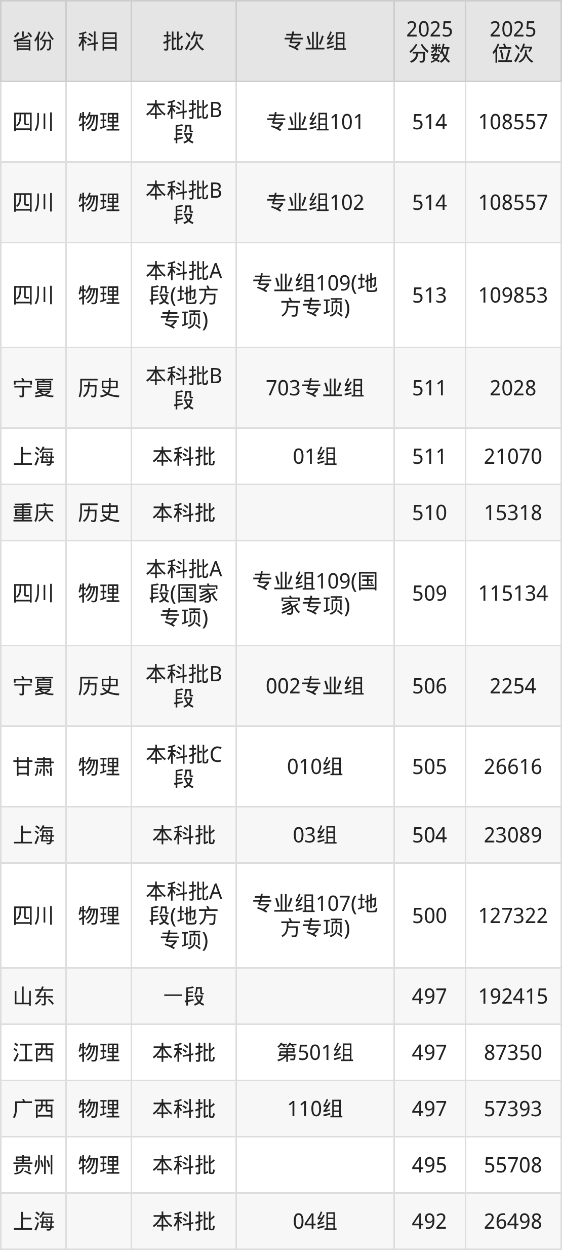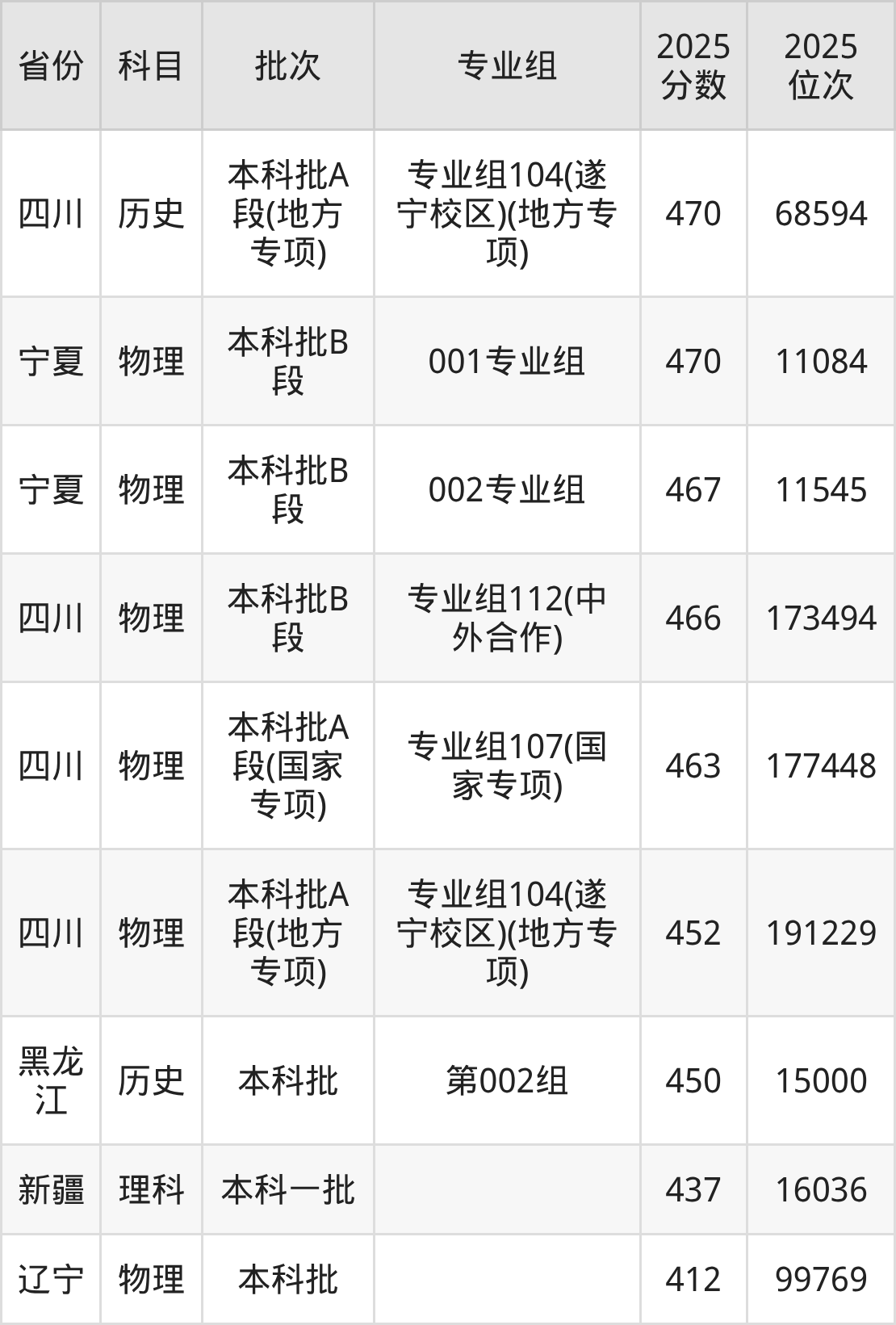 下面是2025年四川师范大学在全国各省录取最低分数据及位次,各位考生也可作为一个参考。