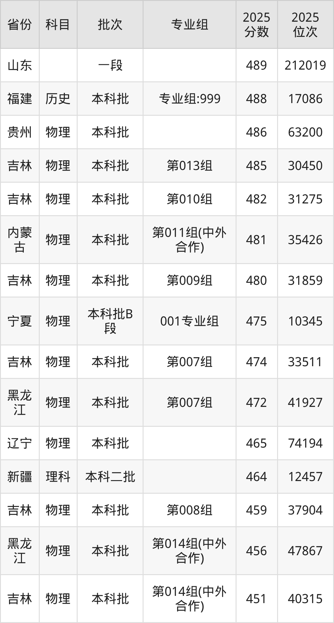 参考2025年山东省高考招录数据,按照分数线从高到低依次为大家展示东北电力大学各个专业录取分数线。