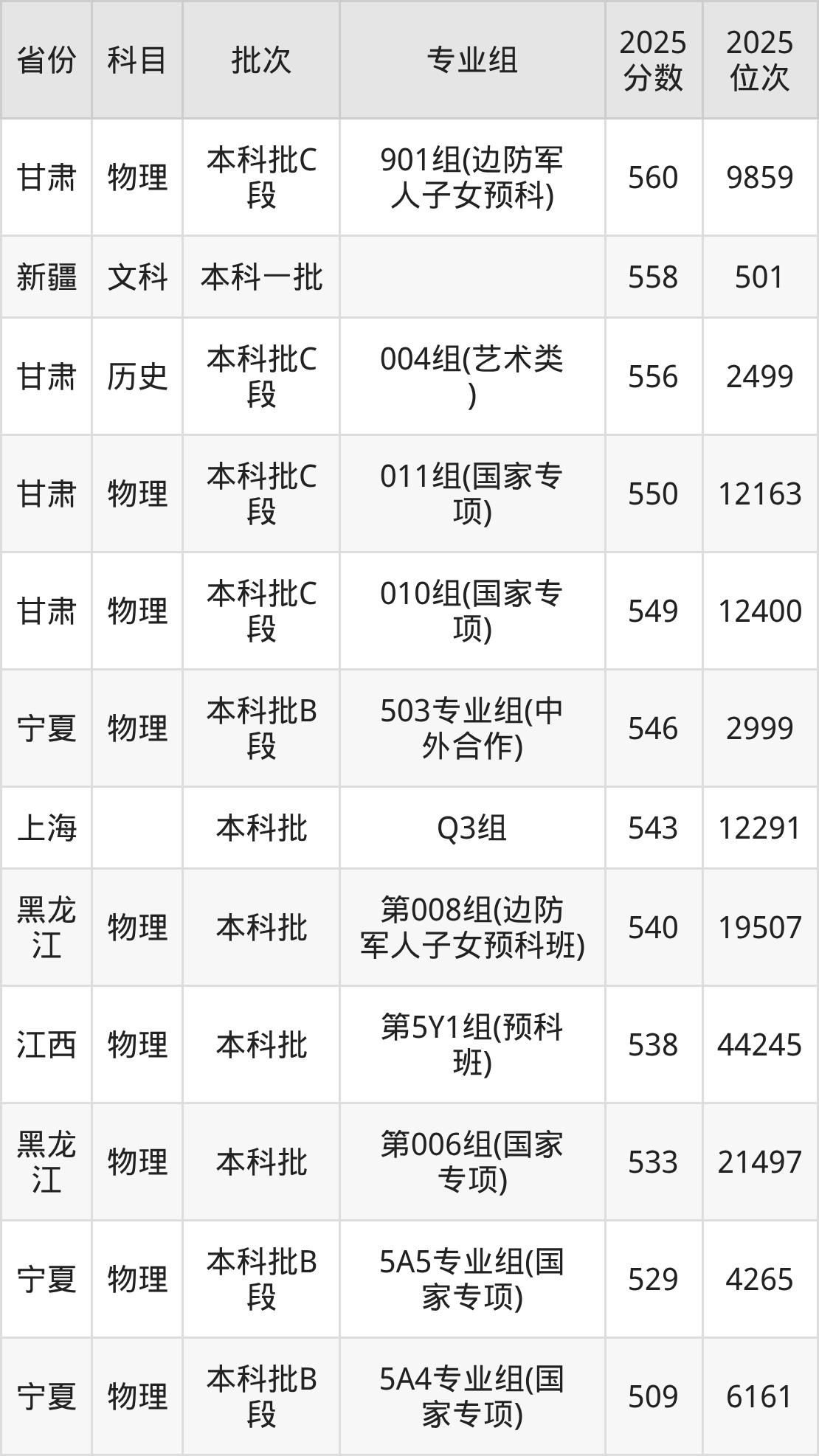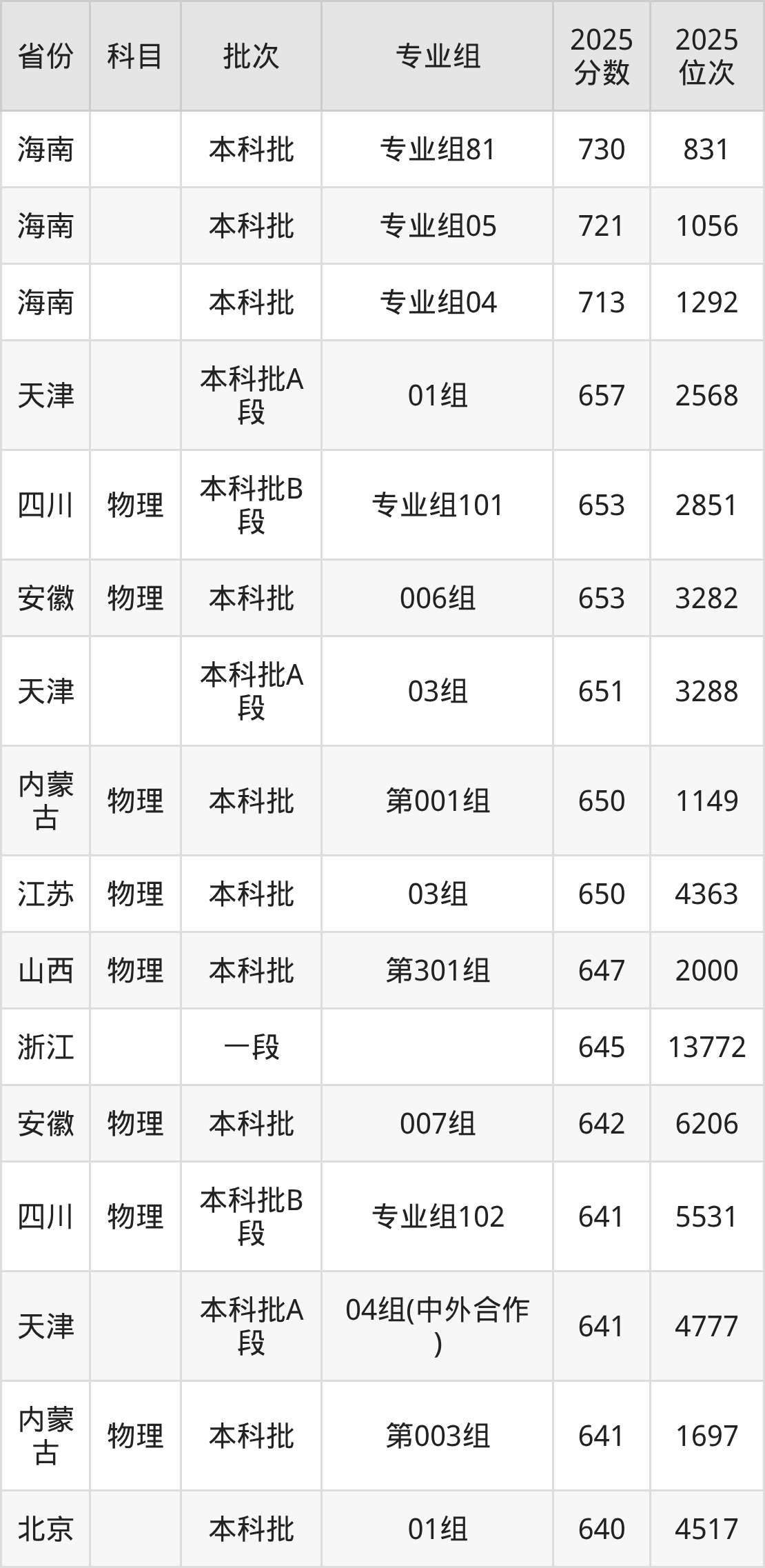 参考2025年山东省高考招录数据,按照分数线从高到低依次为大家展示重庆大学各个专业录取分数线。