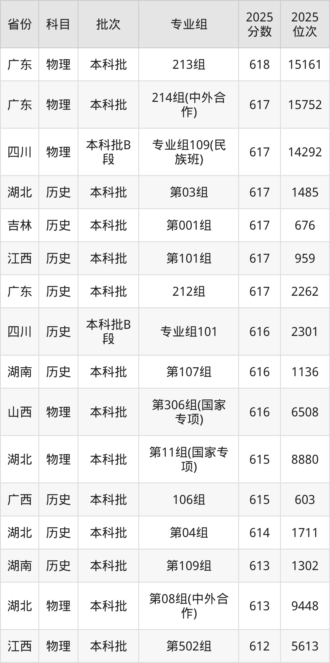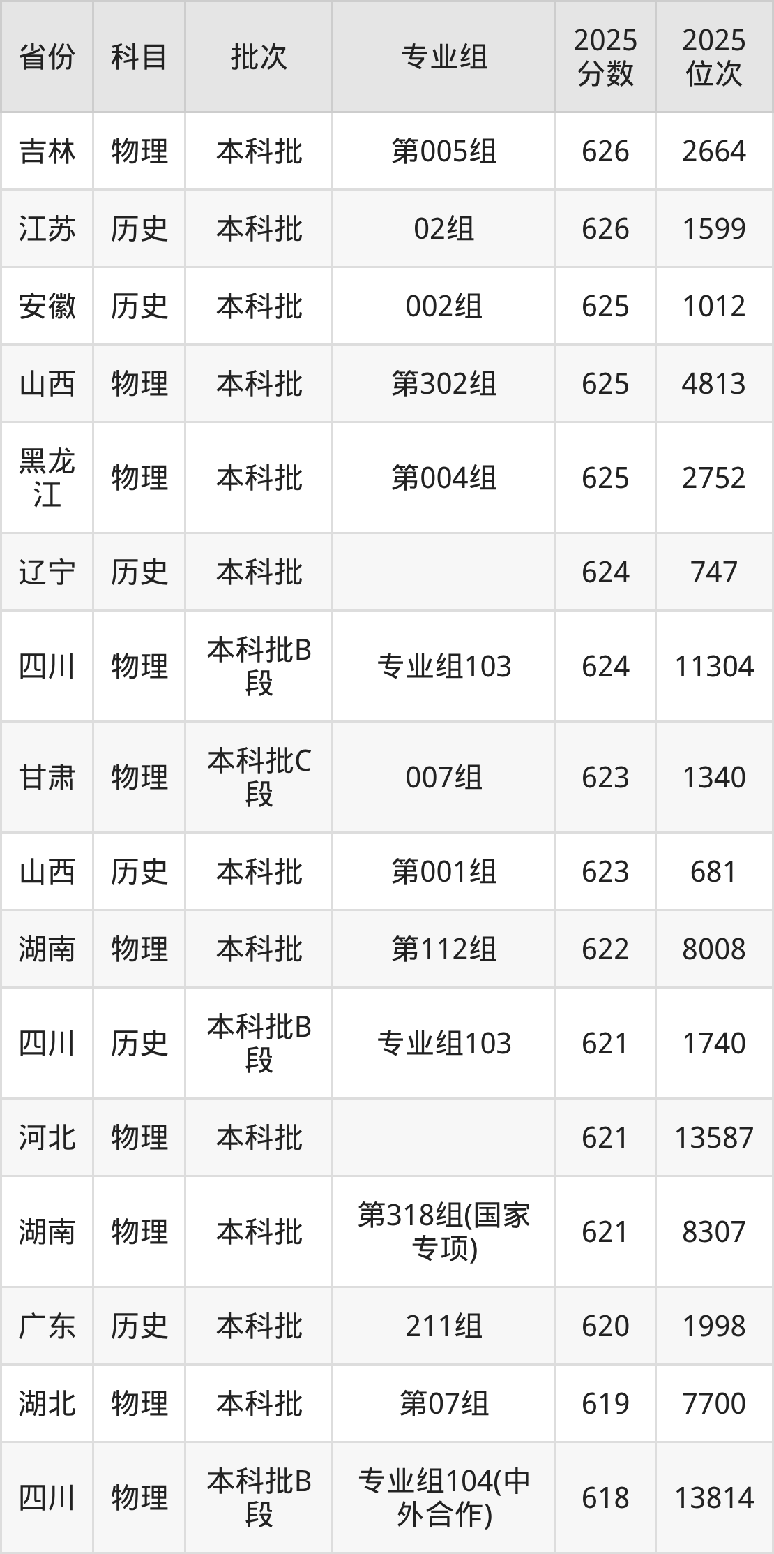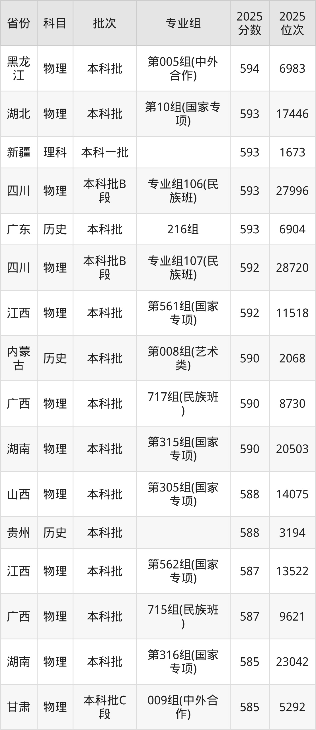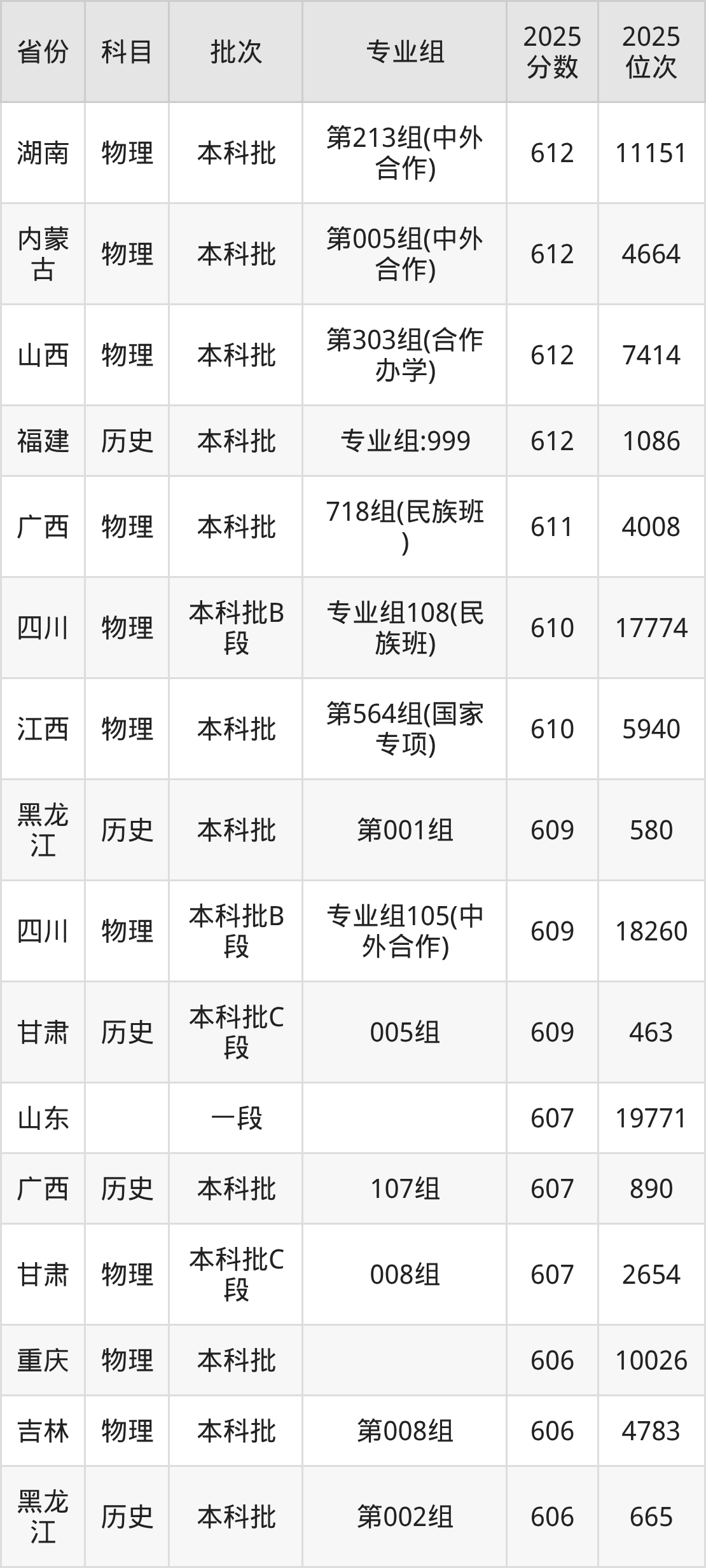 下面是2025年重庆大学在全国各省录取最低分数据及位次,各位考生也可作为一个参考。