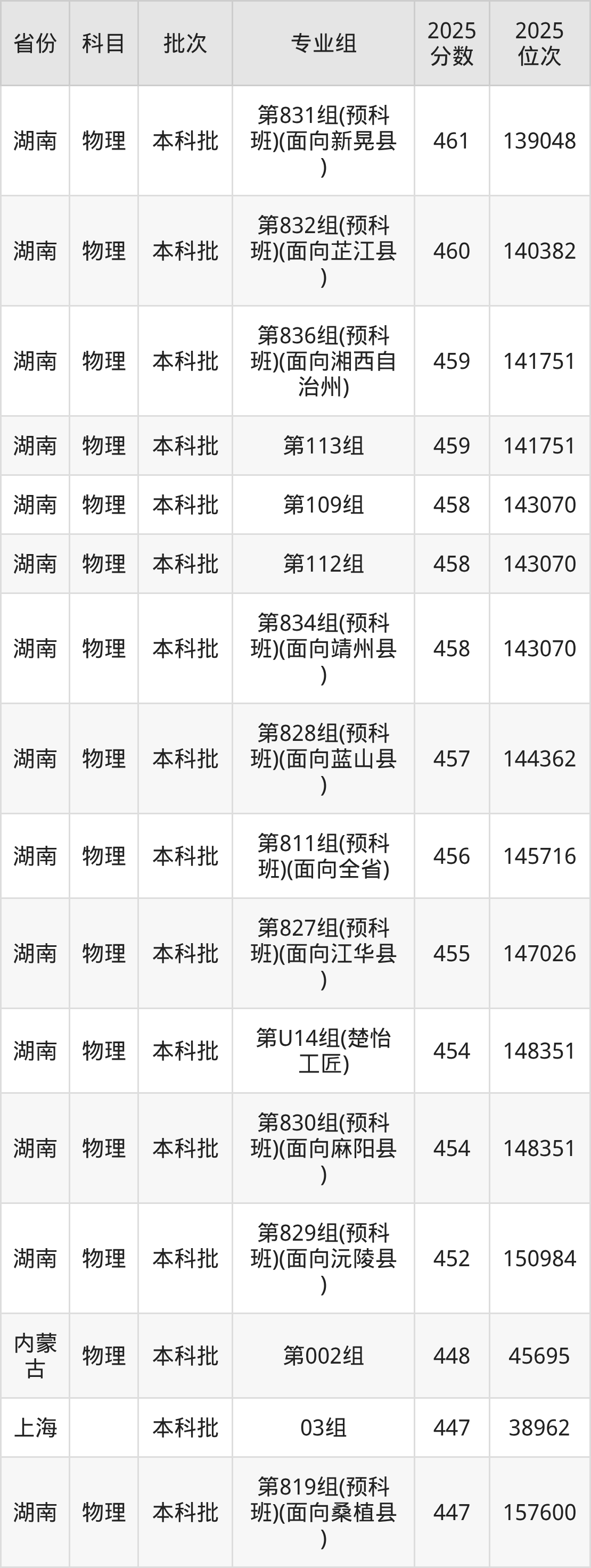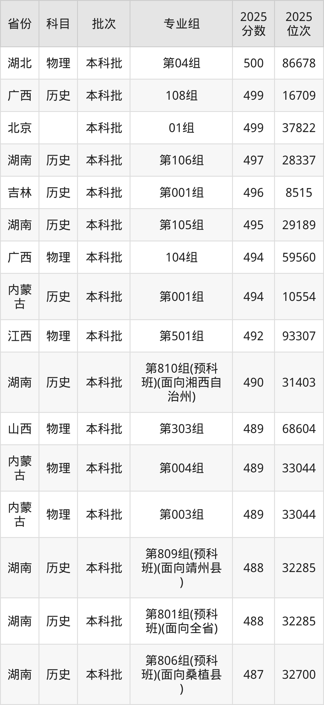 下面是2025年湘南学院在全国各省录取最低分数据及位次,各位考生也可作为一个参考。