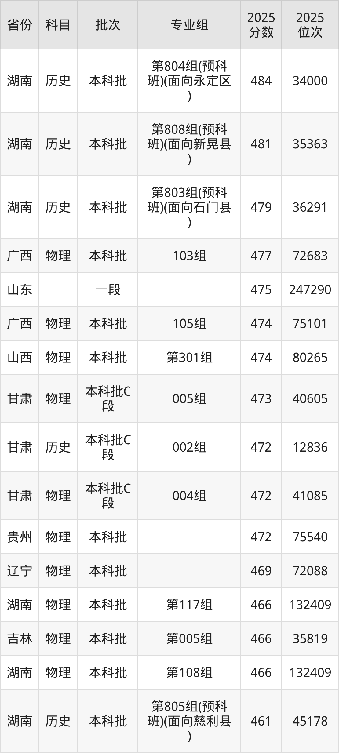 2025年湘南学院各专业录取分数线从475分到551分不等,录取分数线最低的专业是数学与应用数学;录取分数线最高的专业是口腔医学、针灸推拿学。本文将展示湘南学院所有专业最低分数线及位次,供2026届高考生参考。