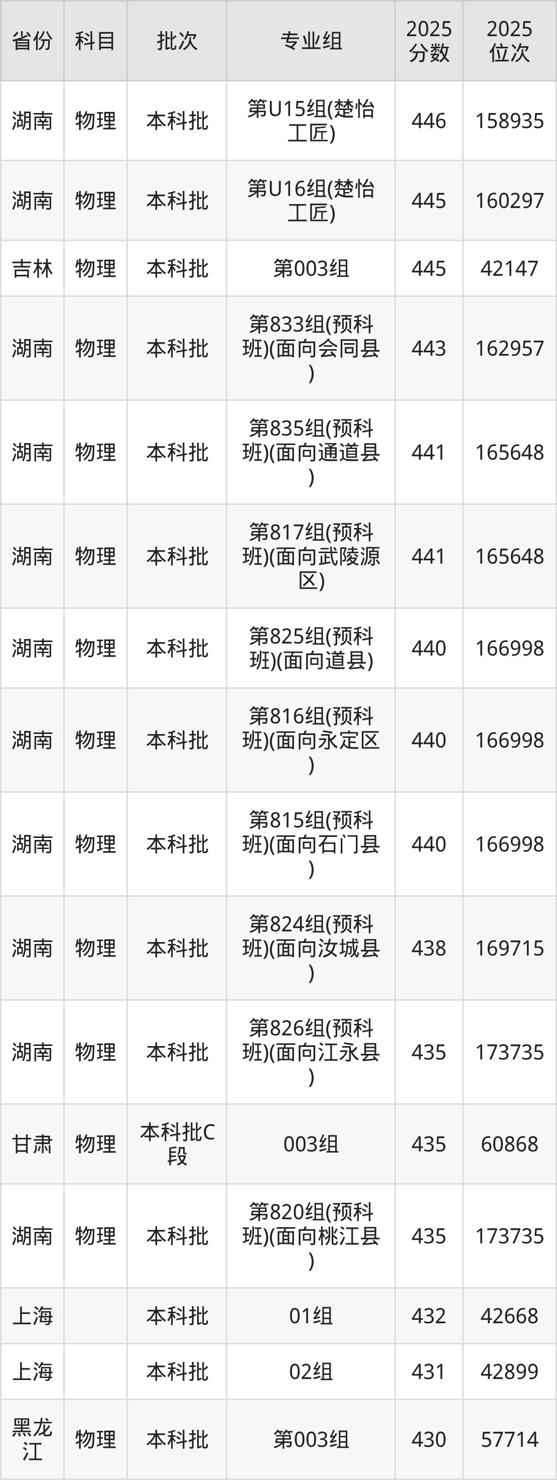 参考2025年山东省高考招录数据,按照分数线从高到低依次为大家展示湘南学院各个专业录取分数线。