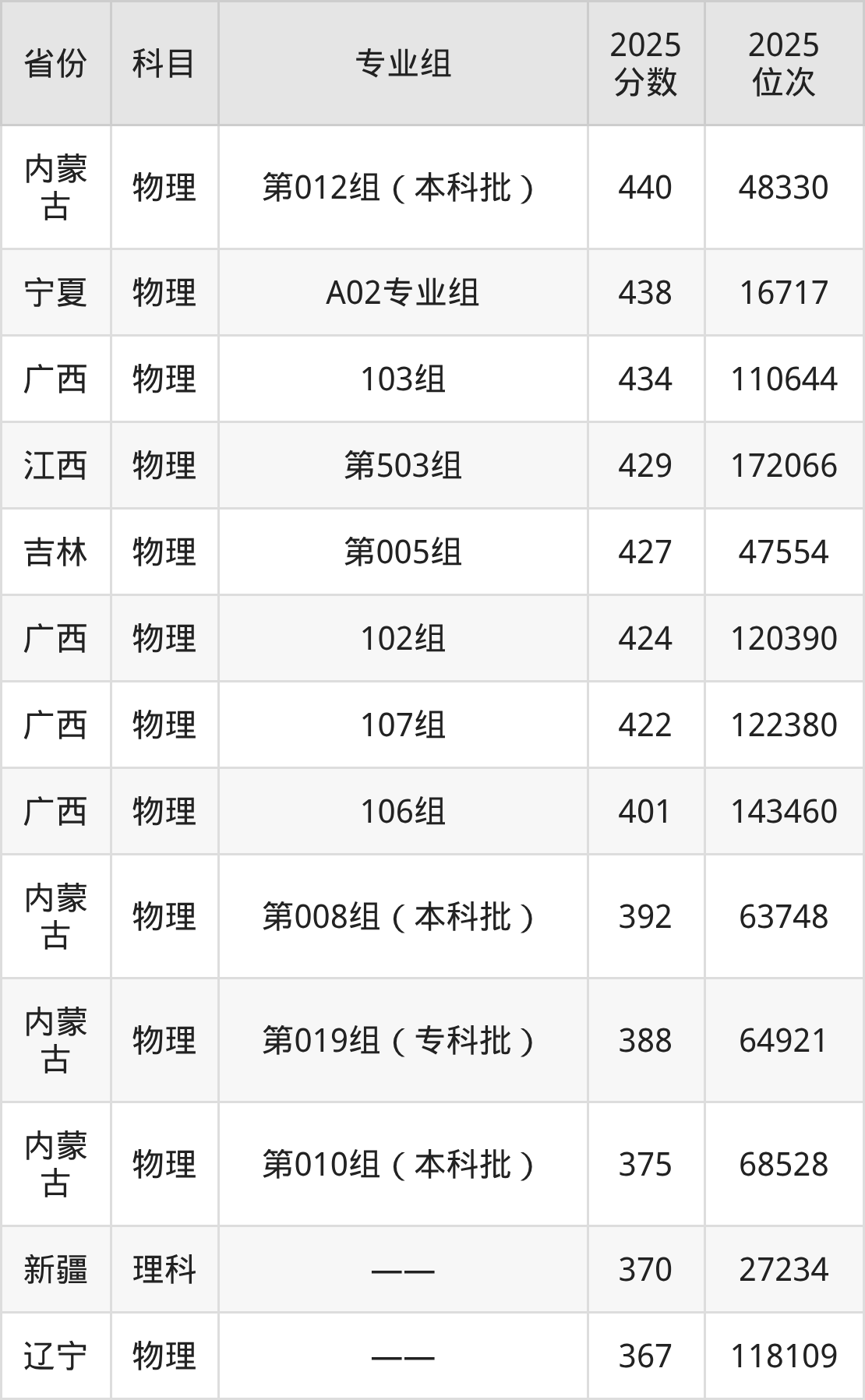 一、内蒙古医科大学2025年专业录取分数线