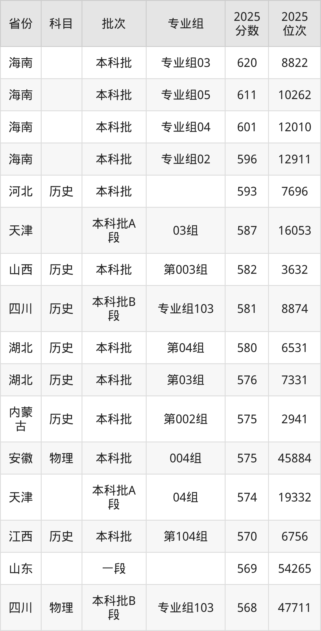 2025年西安外国语大学全国录取分数线437分到620分,录取最高在海南(专业组03)、录取最低在新疆(理科)。