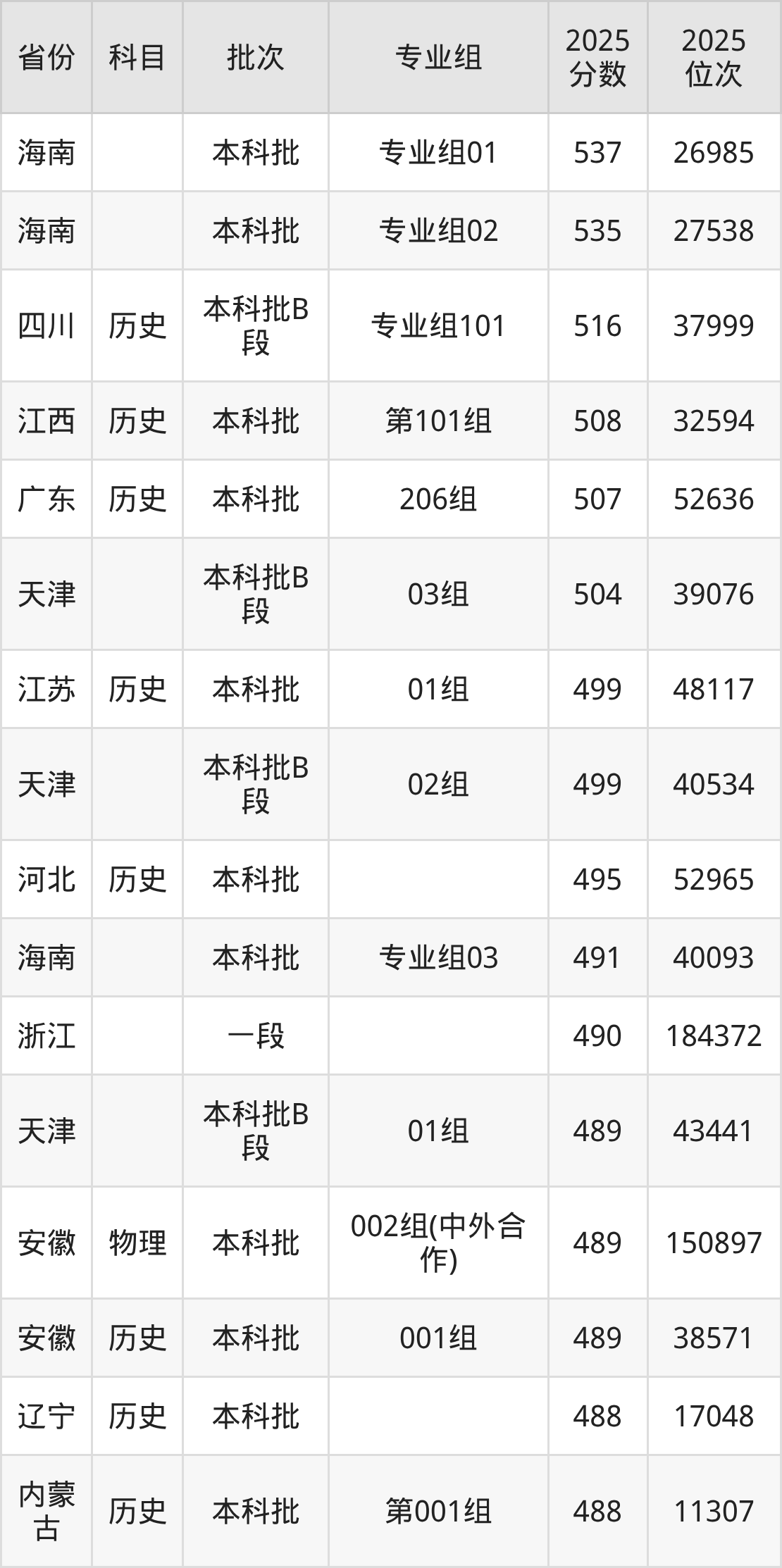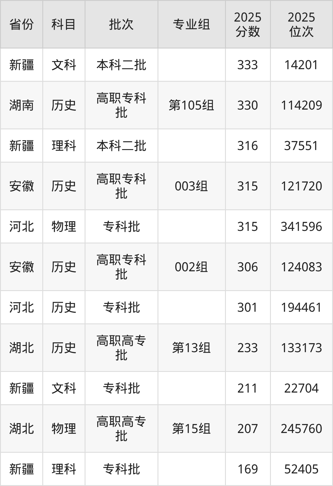 2025年武昌理工学院全国录取分数线169分到537分,录取最高在海南(专业组01)、录取最低在新疆(理科)。
