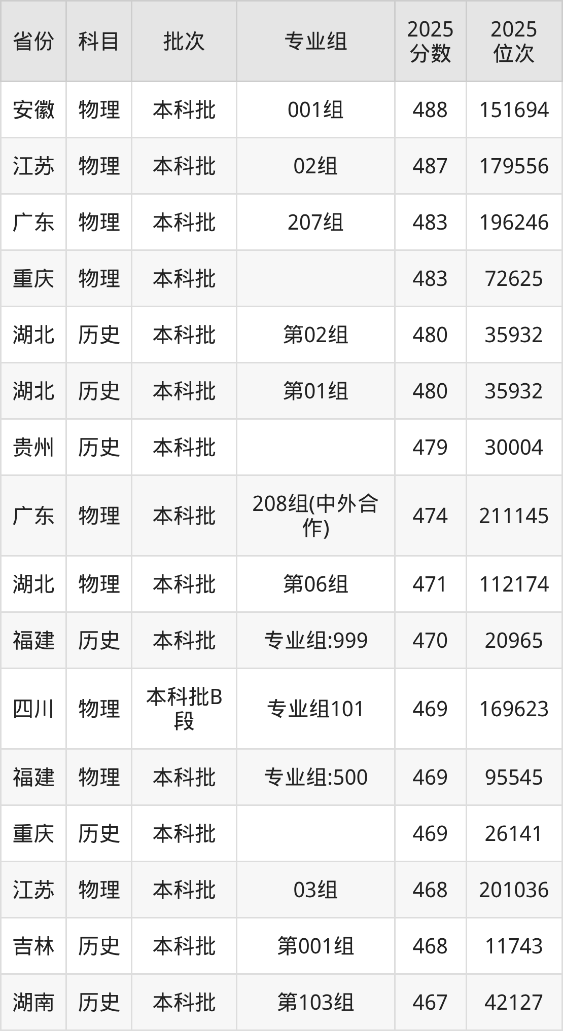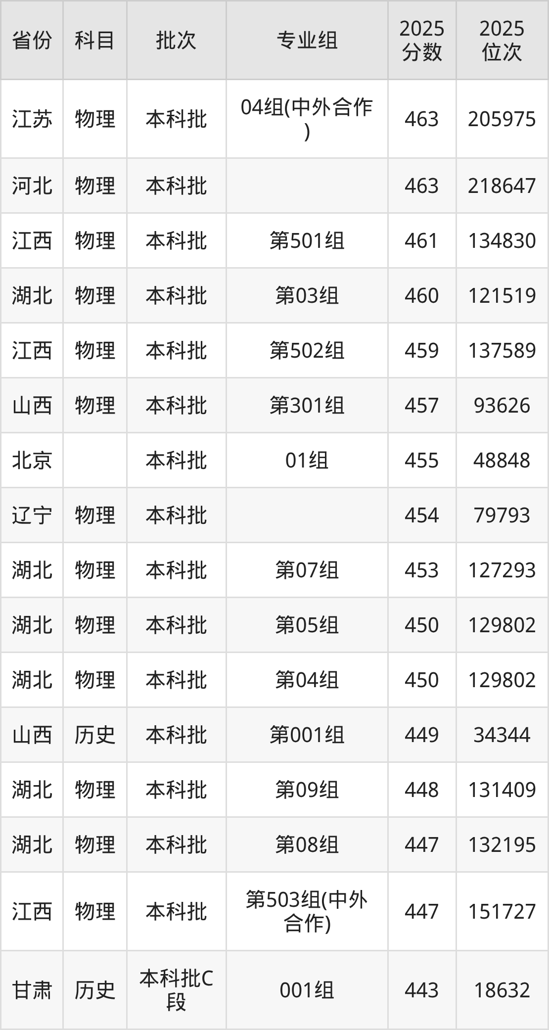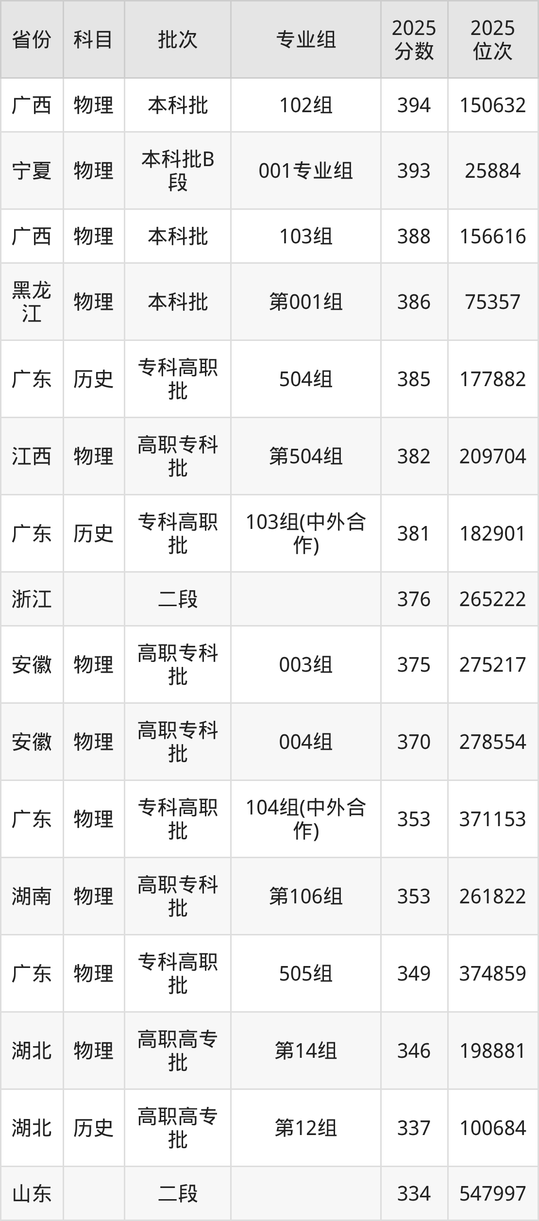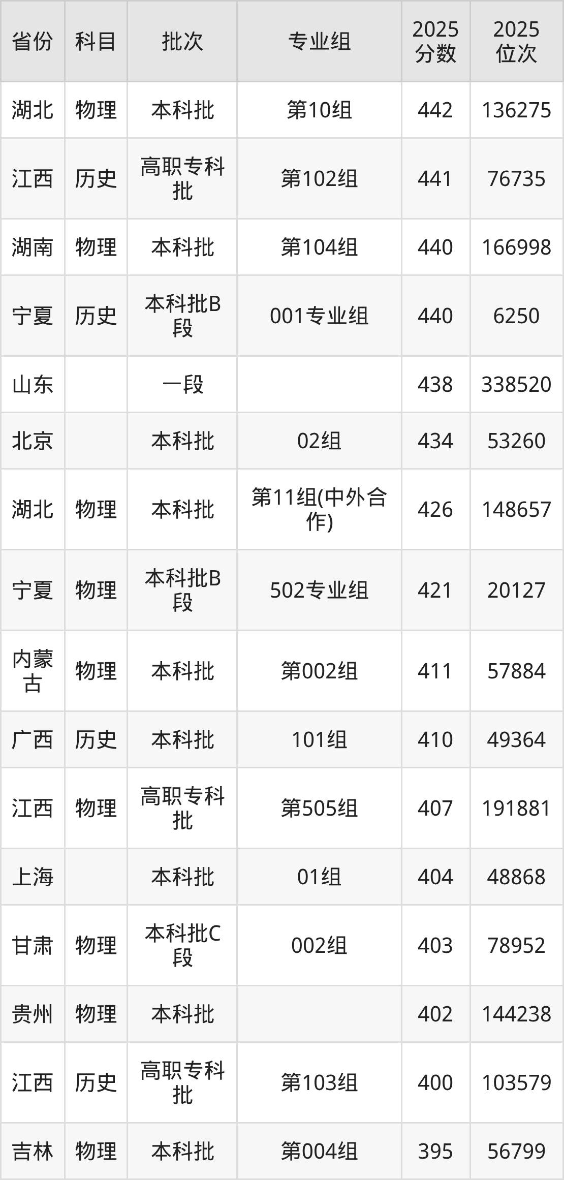 下面是2025年武昌理工学院在全国各省录取最低分数据及位次,各位考生也可作为一个参考。