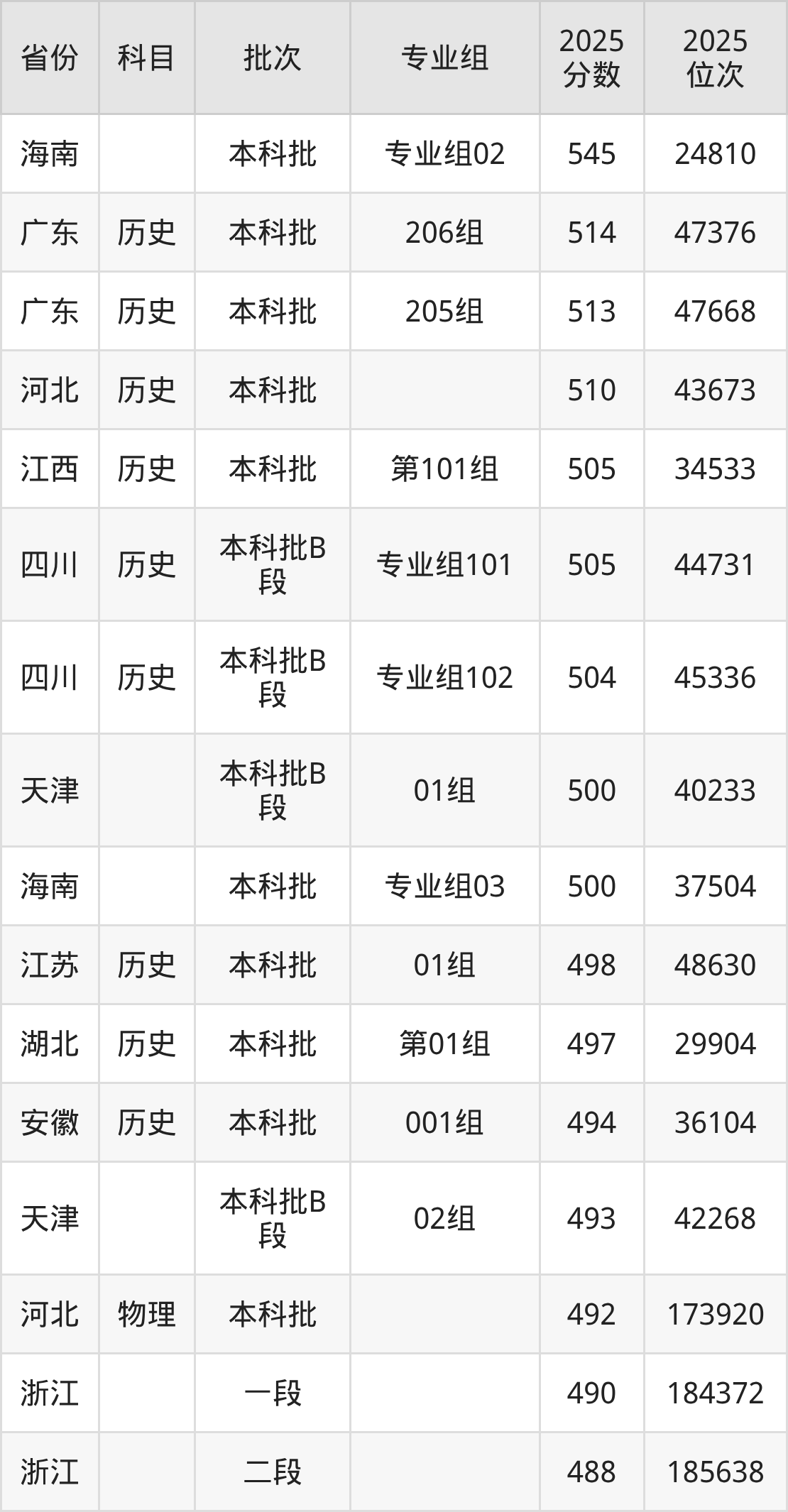 下面是2025年重庆对外经贸学院在全国各省录取最低分数据及位次,各位考生也可作为一个参考。