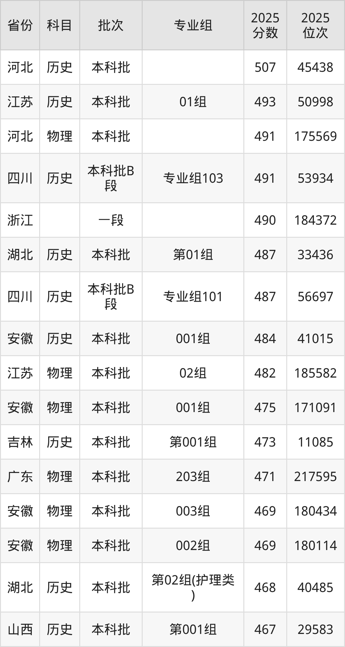4、护理学:485分、位次223711名;