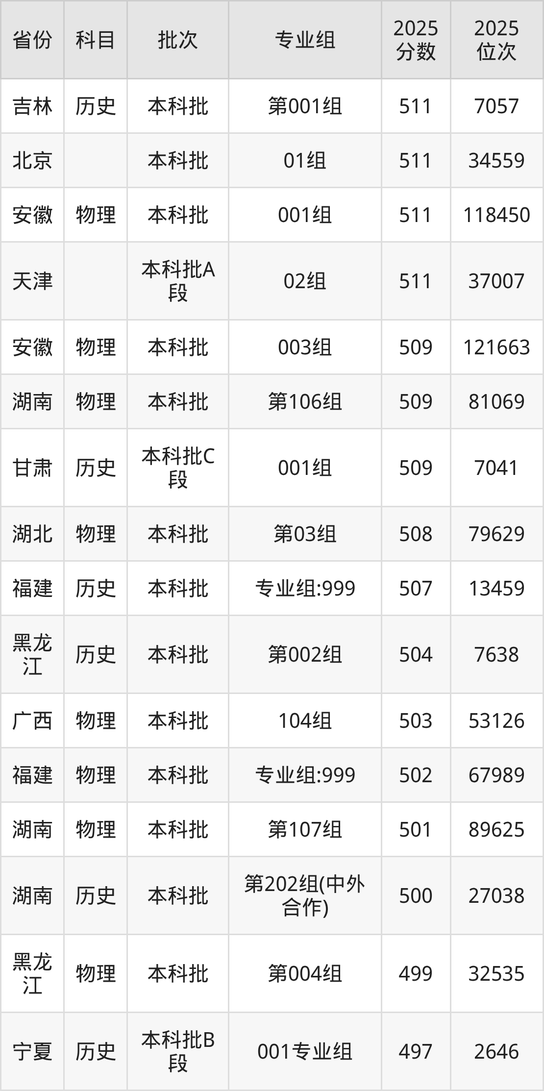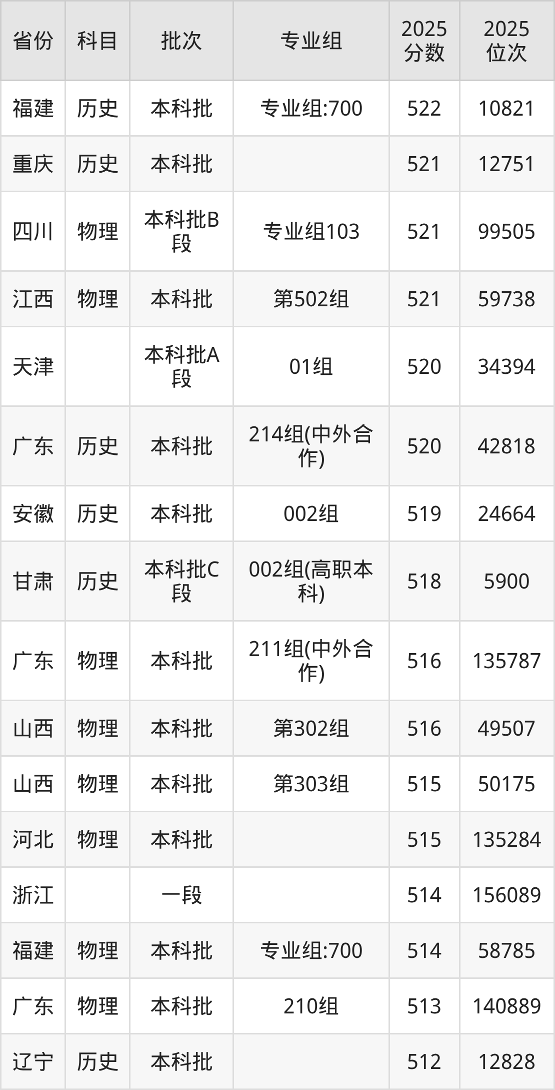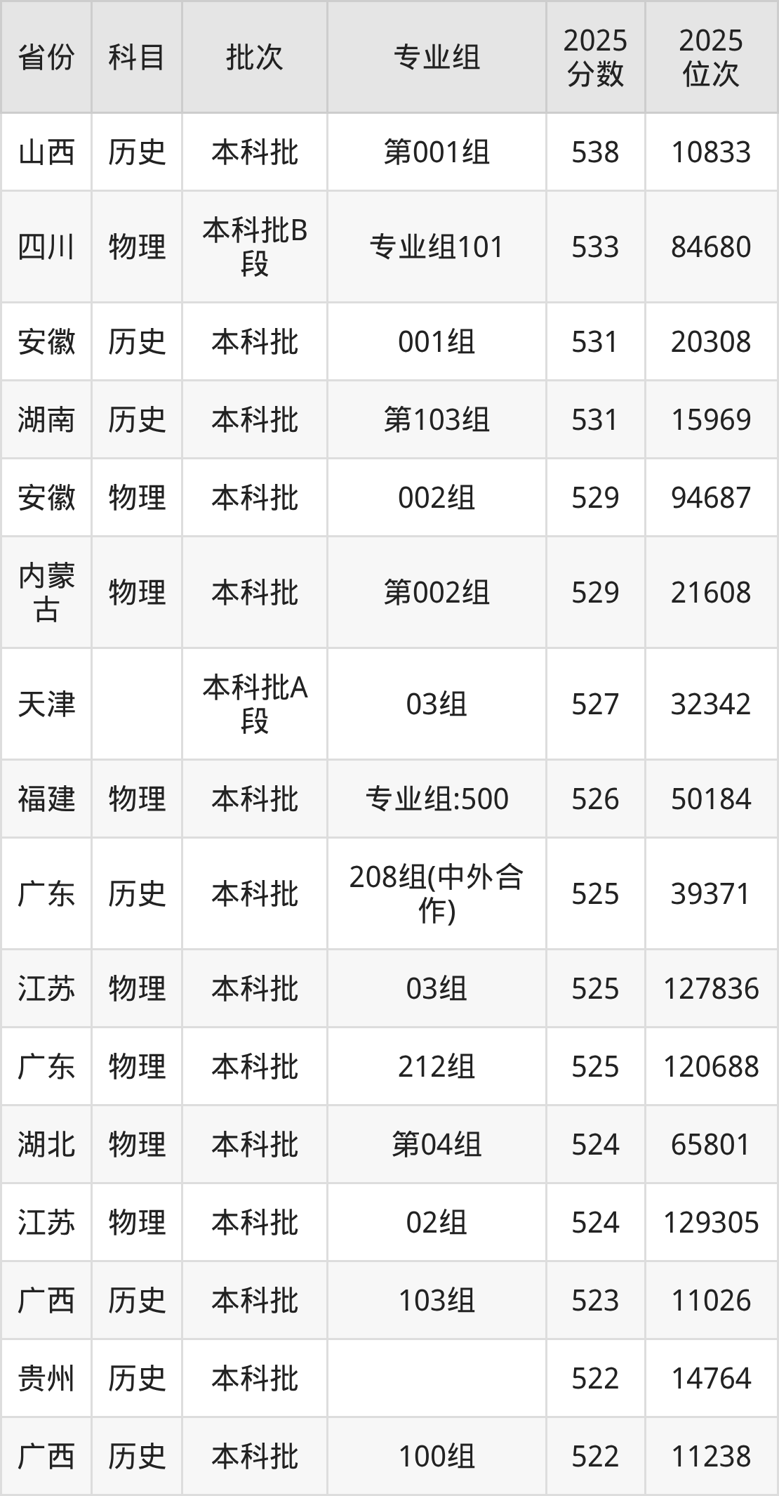 参考2025年山东省高考招录数据,按照分数线从高到低依次为大家展示云南财经大学各个专业录取分数线。
