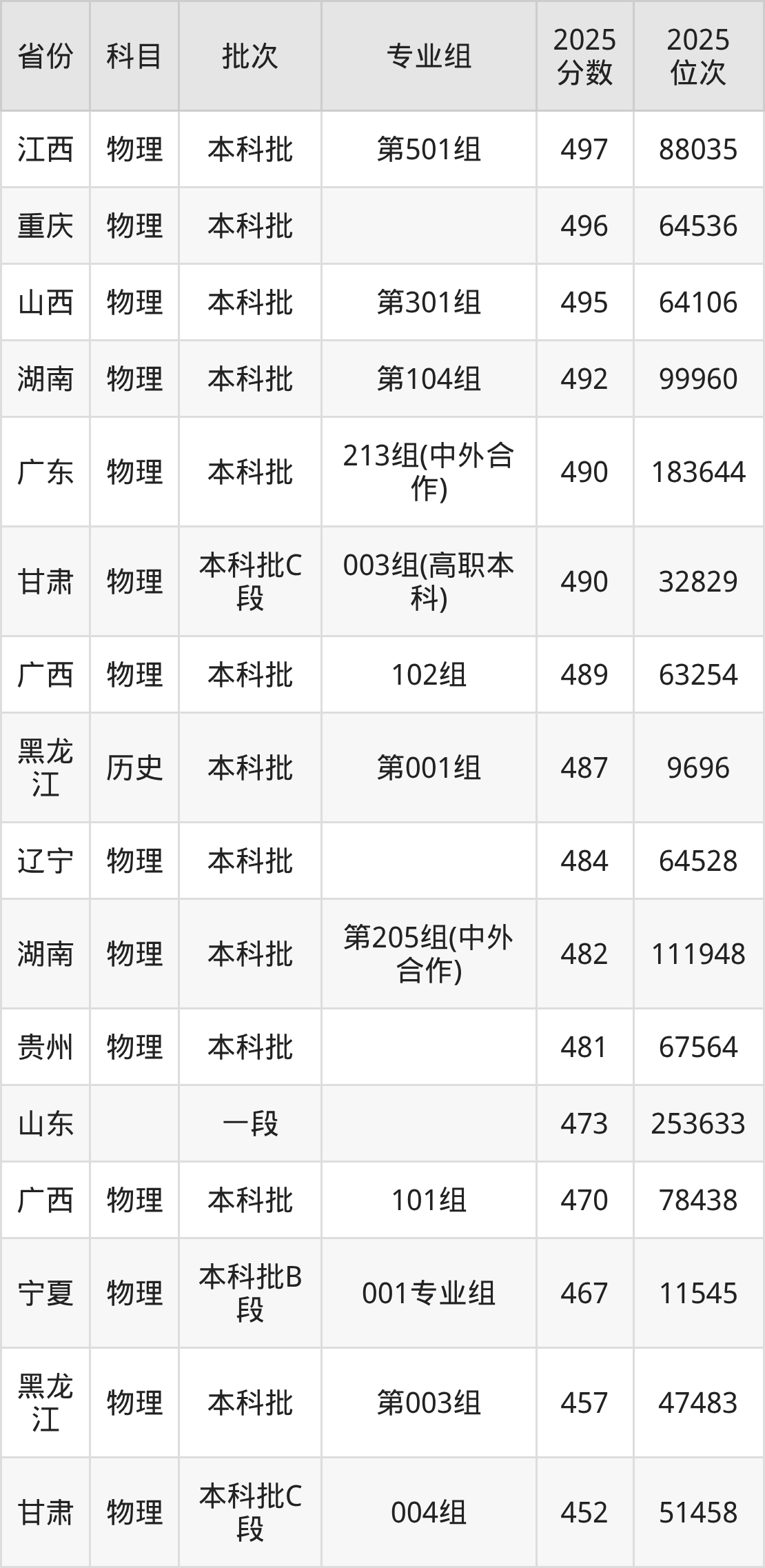 下面是2025年云南财经大学在全国各省录取最低分数据及位次,各位考生也可作为一个参考。