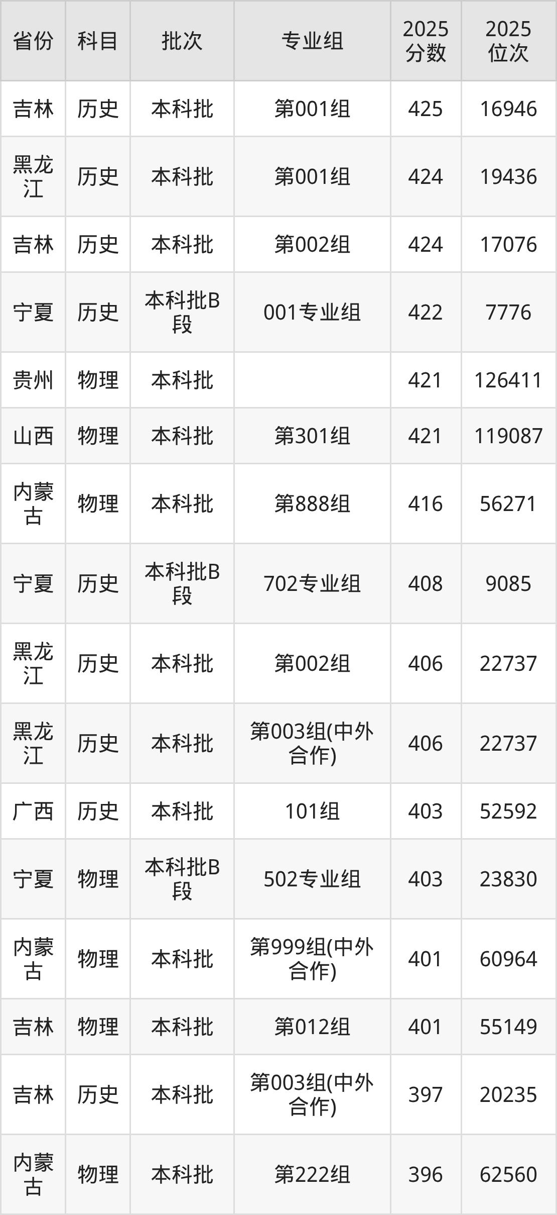 参考2025年山东省高考招录数据,按照分数线从高到低依次为大家展示吉林外国语大学各个专业录取分数线。