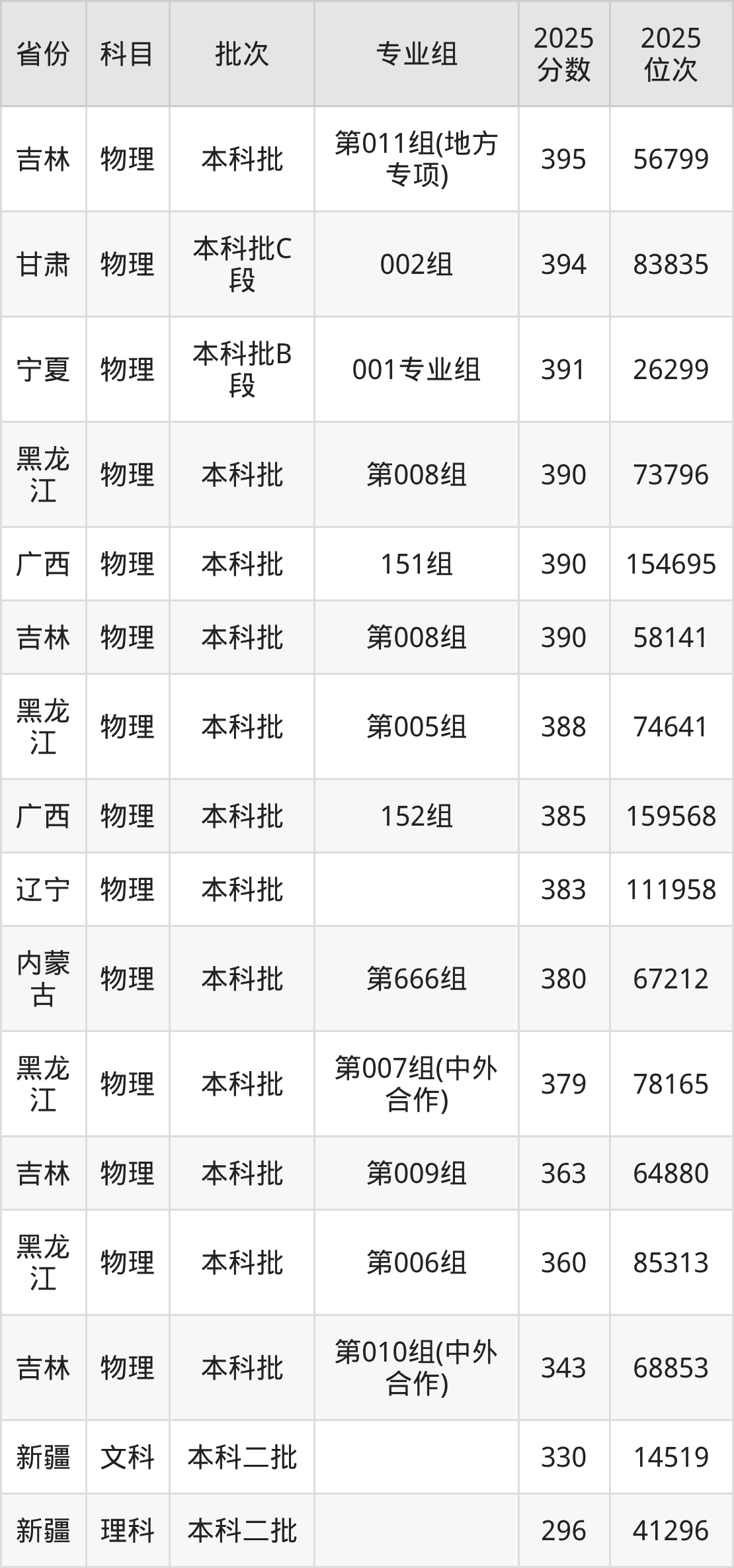 下面是2025年吉林外国语大学在全国各省录取最低分数据及位次,各位考生也可作为一个参考。