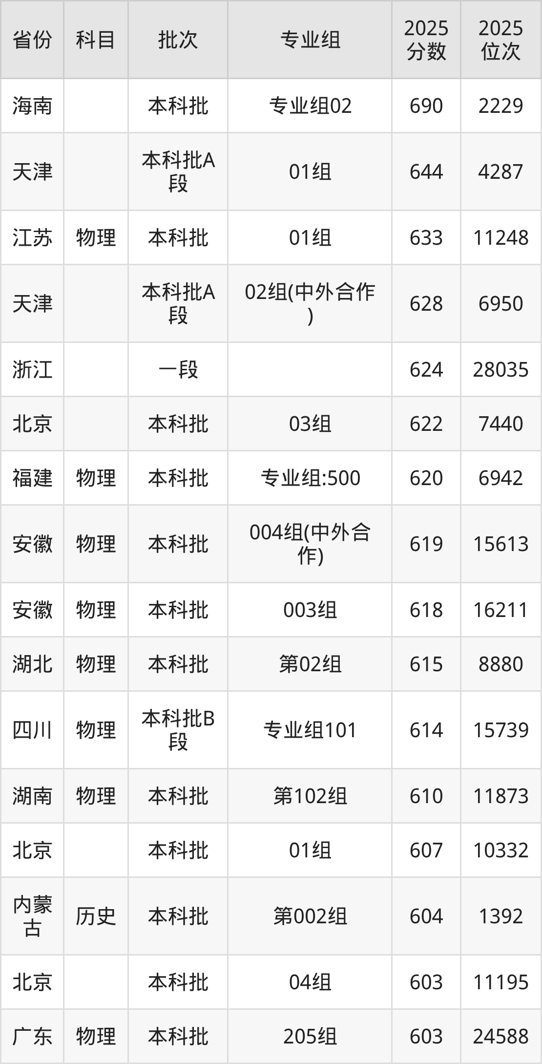 下面是2025年北京工业大学在全国各省录取最低分数据及位次,各位考生也可作为一个参考。