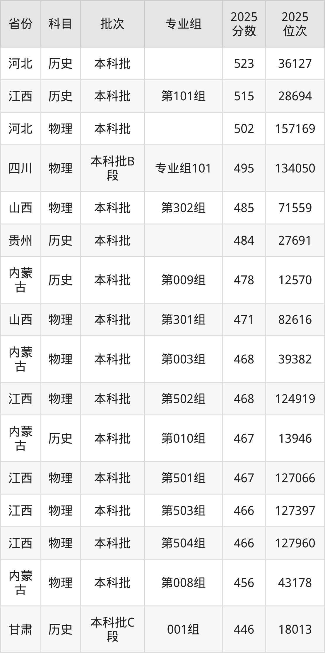 下面是2025年鄂尔多斯应用技术学院在全国各省录取最低分数据及位次,各位考生也可作为一个参考。
