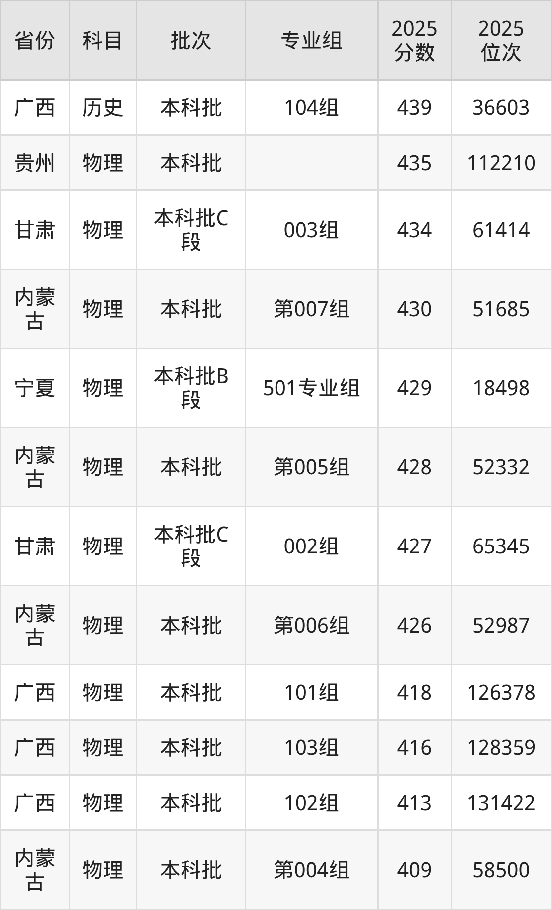 参考2025年贵州省高考招录数据,按照分数线从高到低依次为大家展示鄂尔多斯应用技术学院各个专业录取分数线。