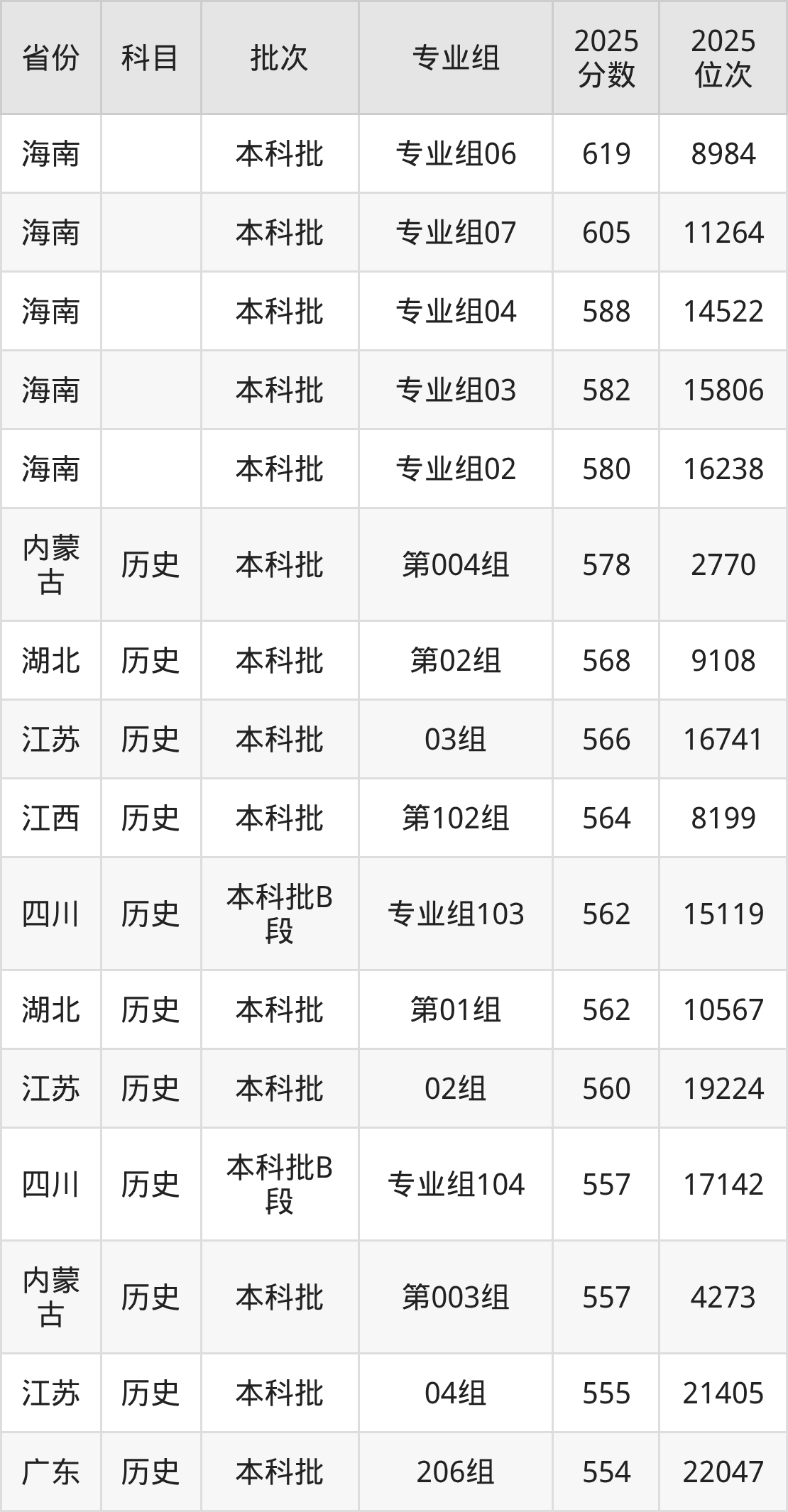 2025年淮北师范大学全国录取分数线295分到619分,录取最高在海南(专业组06)、录取最低在新疆(理科)。