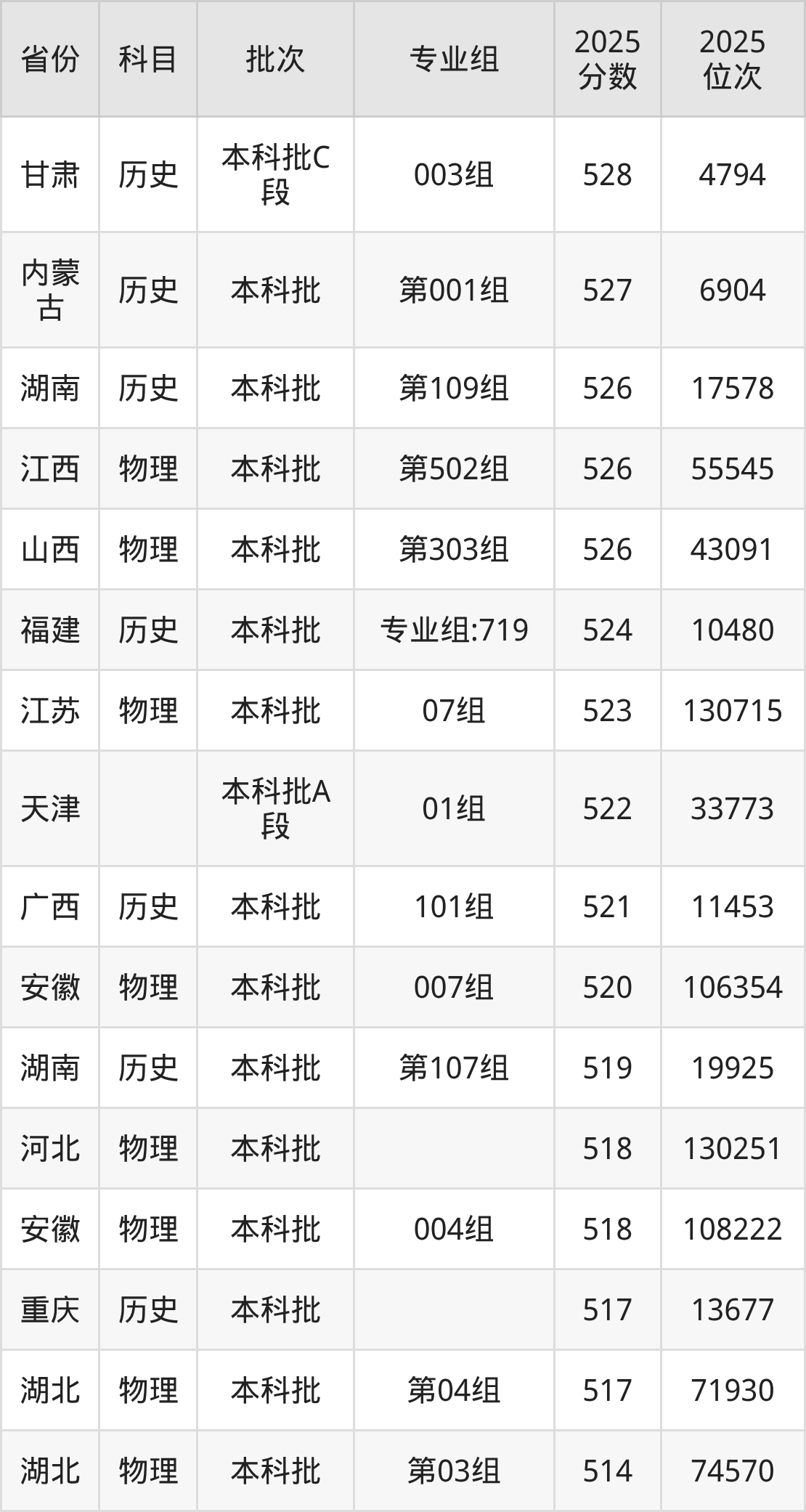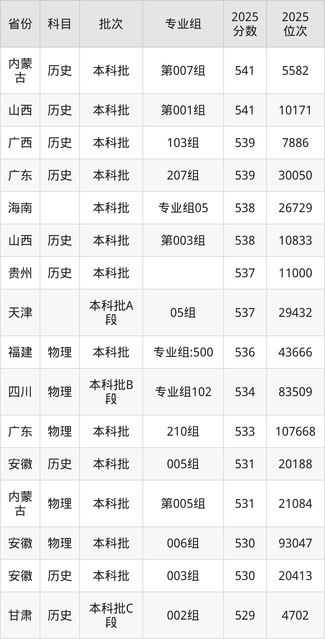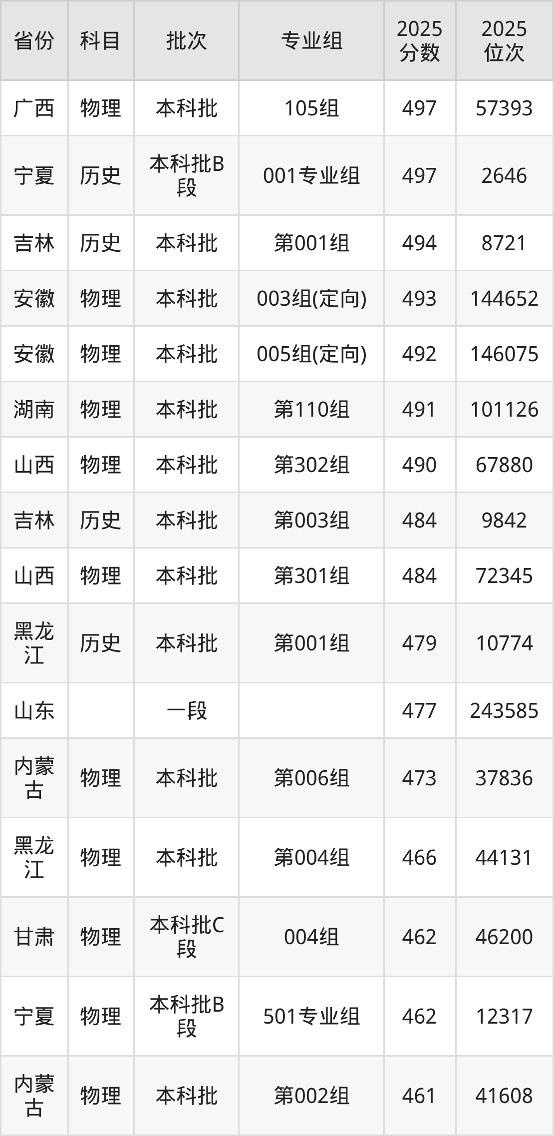参考2025年山东省高考招录数据,按照分数线从高到低依次为大家展示淮北师范大学各个专业录取分数线。