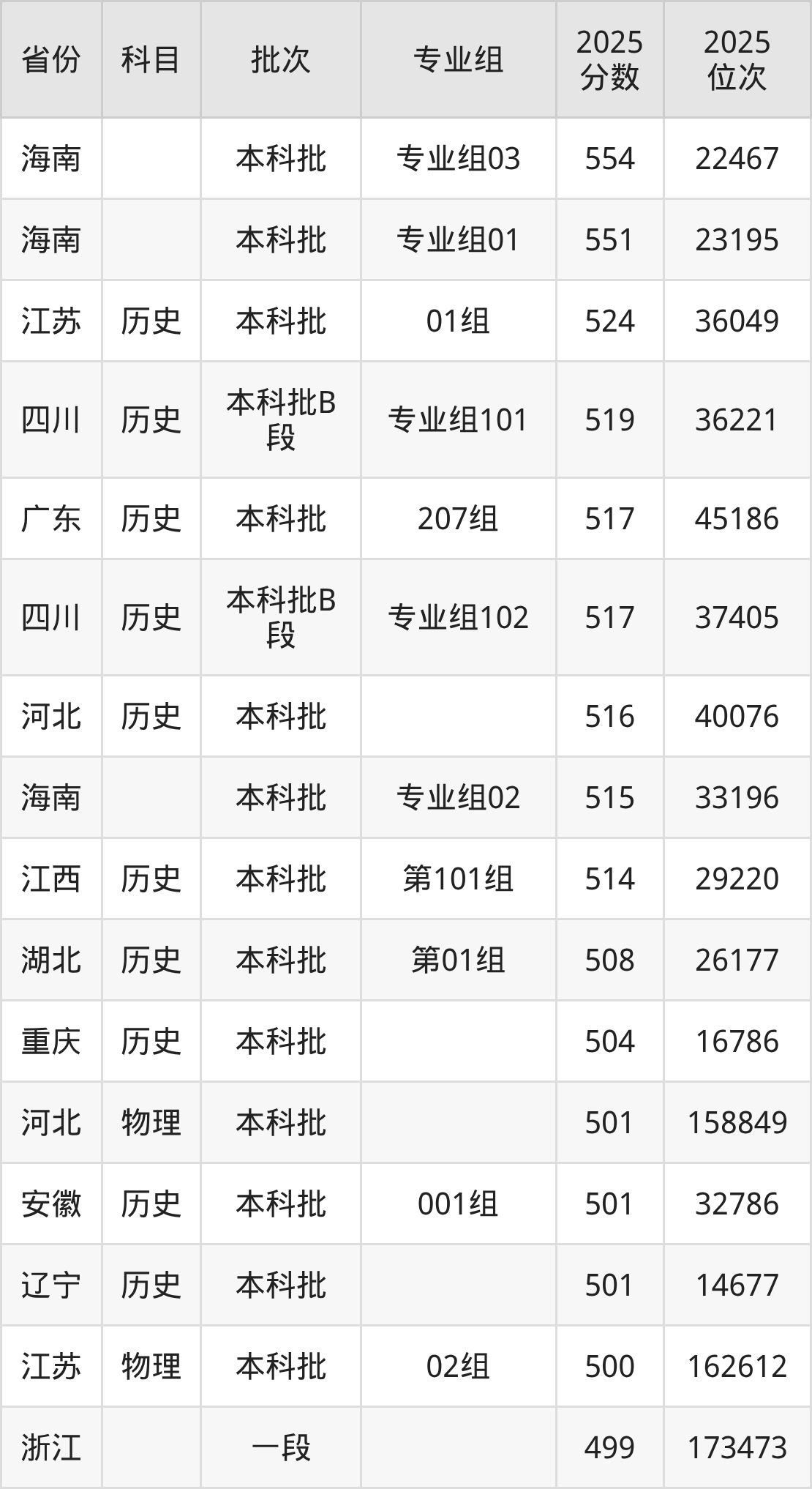 2025年吉林农业科技学院全国录取分数线341分到554分,录取最高在海南(专业组03)、录取最低在新疆(理科)。