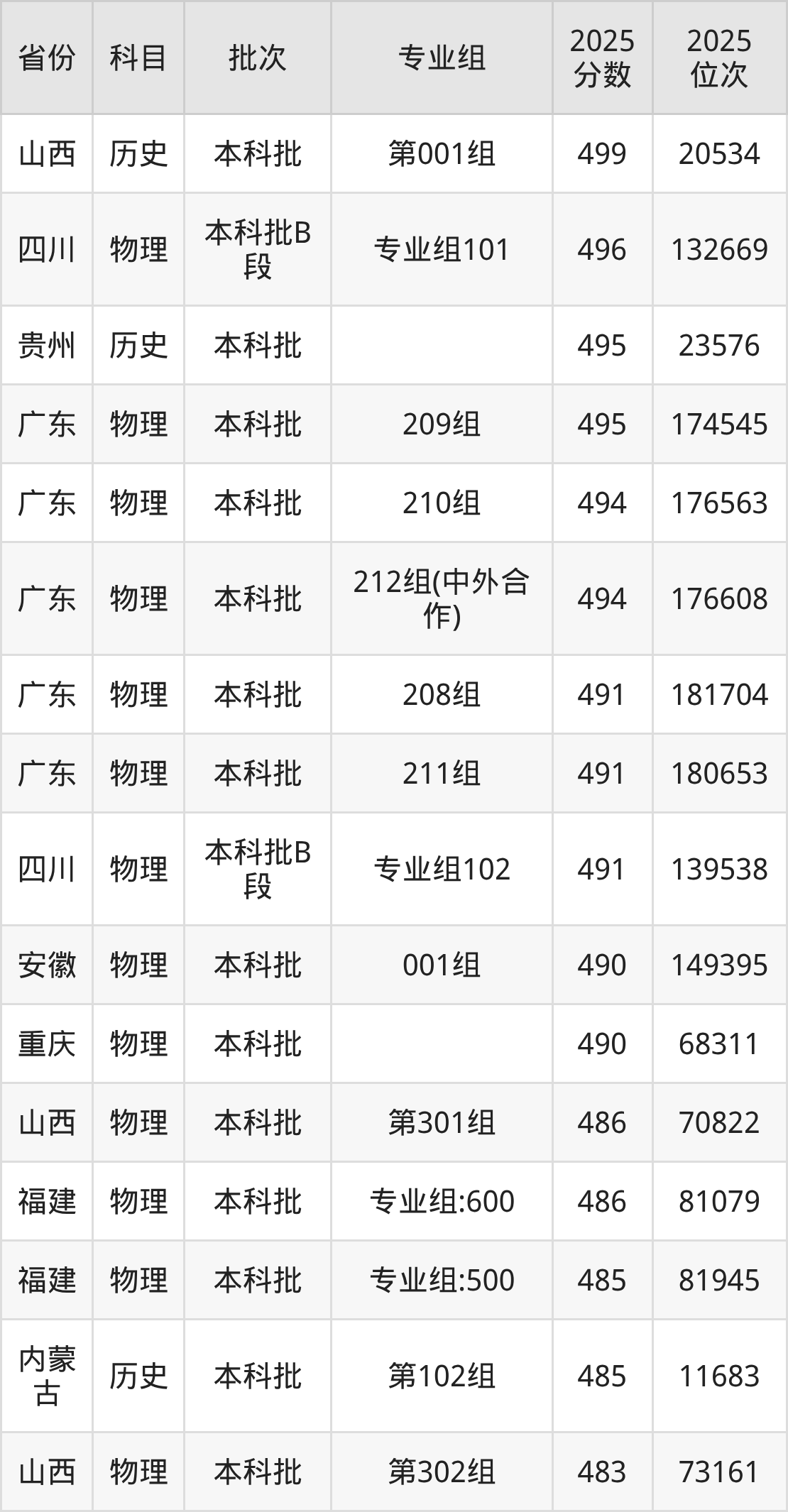 3、机械设计制造及其自动化:486分、位次219895名;