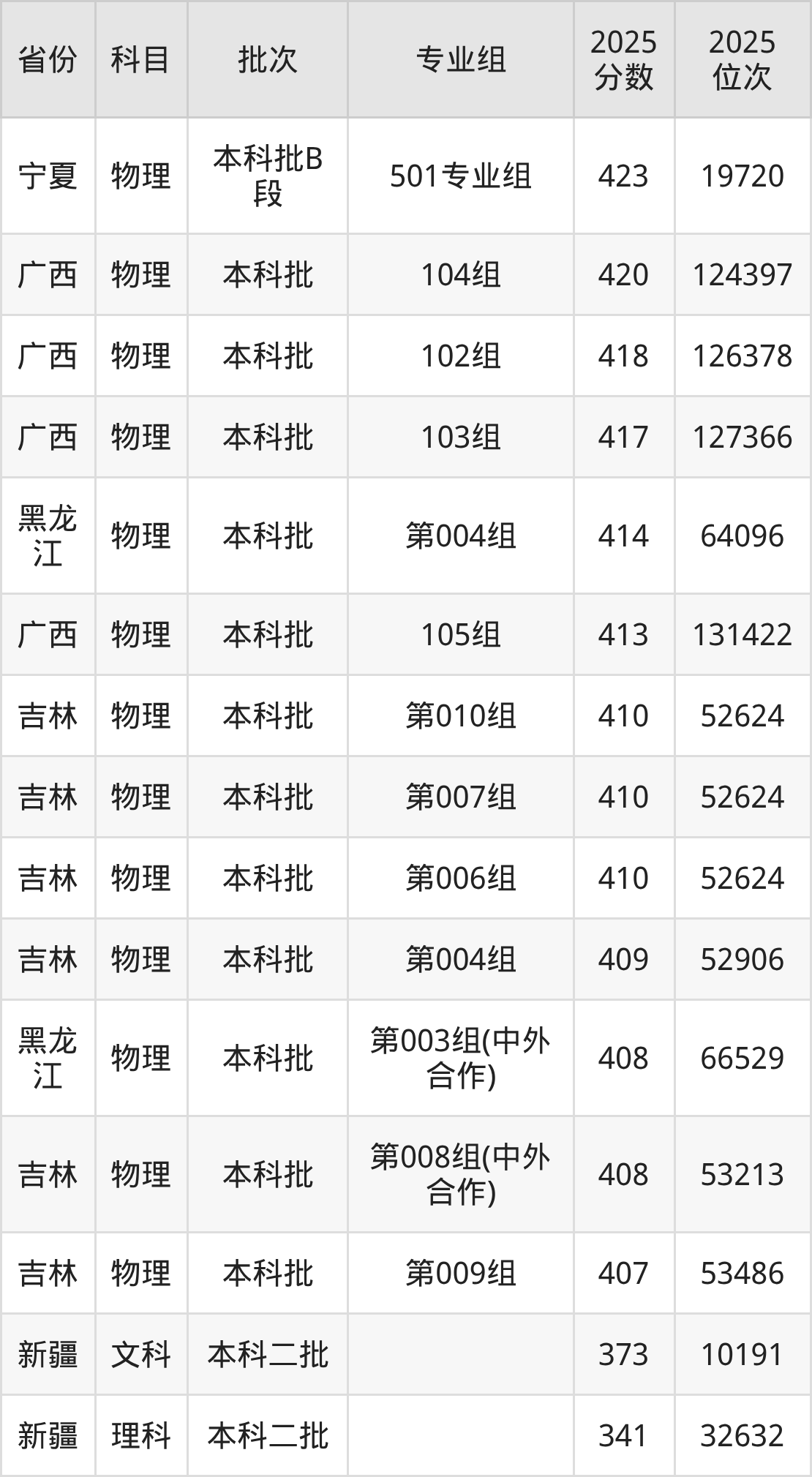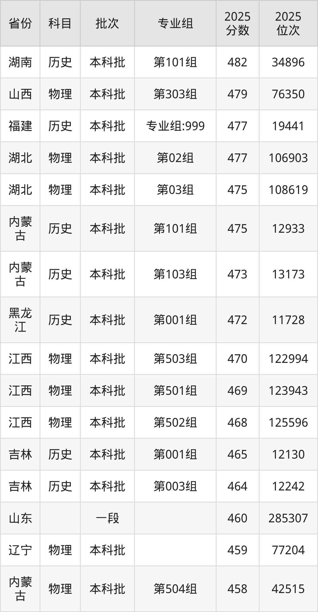 5、电子信息科学与技术:480分、位次234232名;