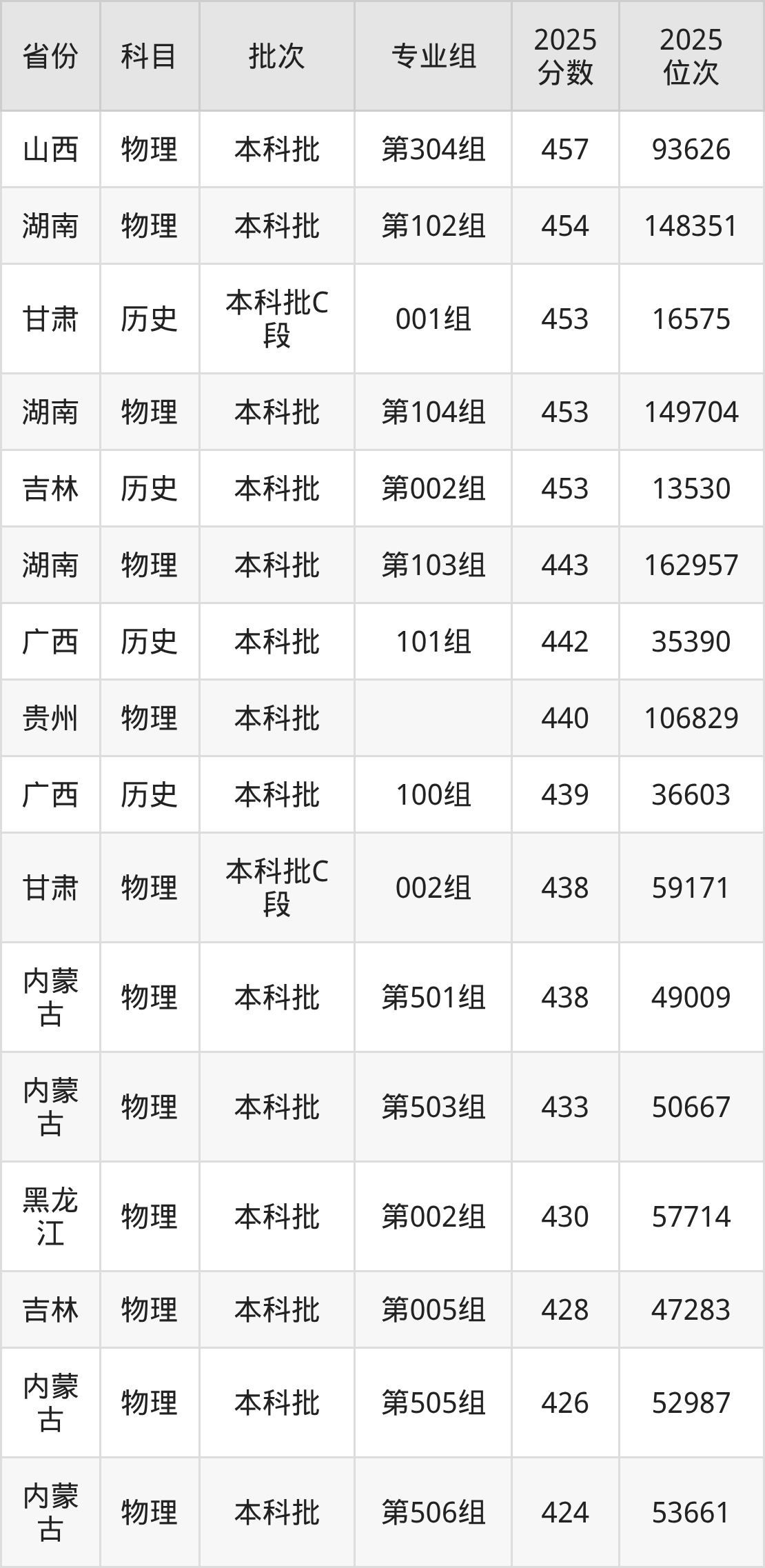 13、土木工程:460分、位次285307名。