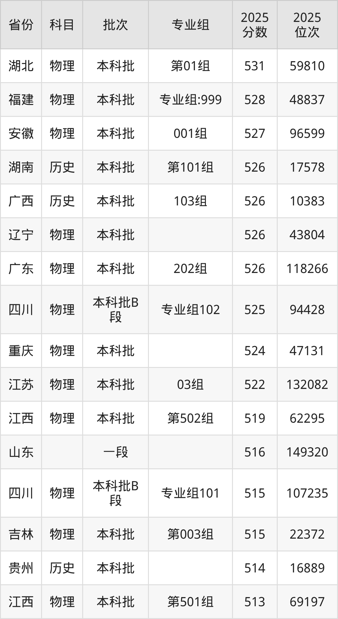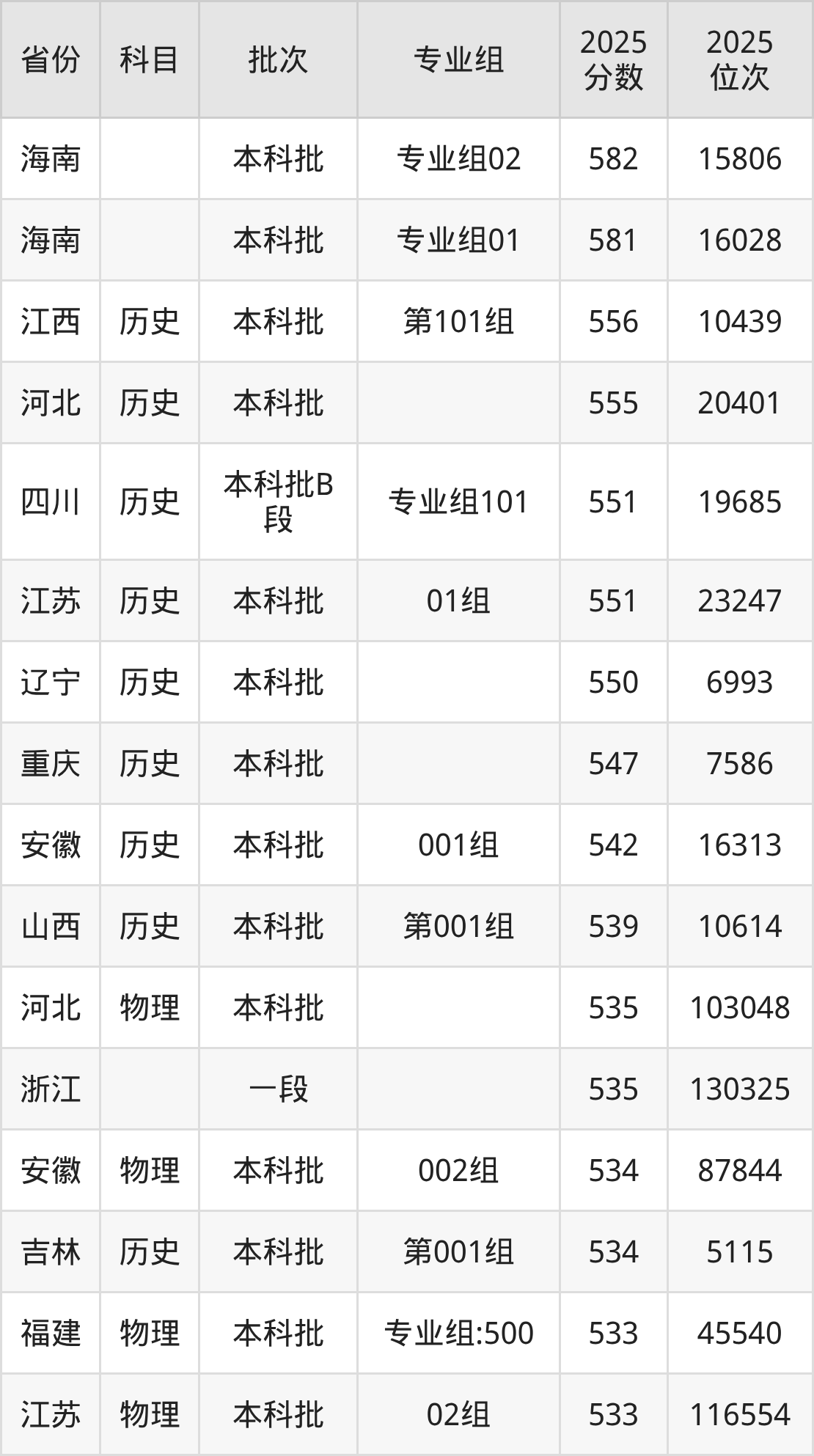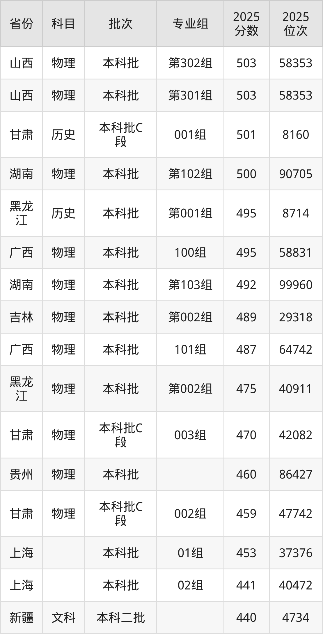 参考2025年山东省高考招录数据,按照分数线从高到低依次为大家展示嘉兴南湖学院各个专业录取分数线。