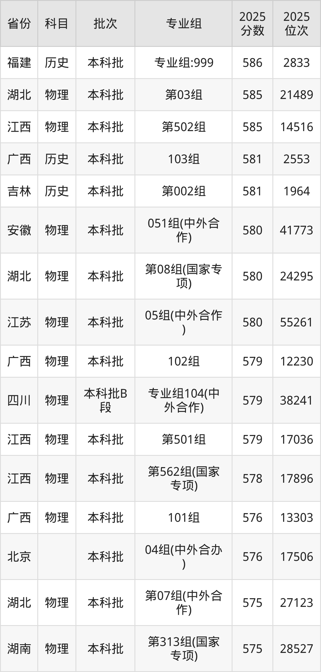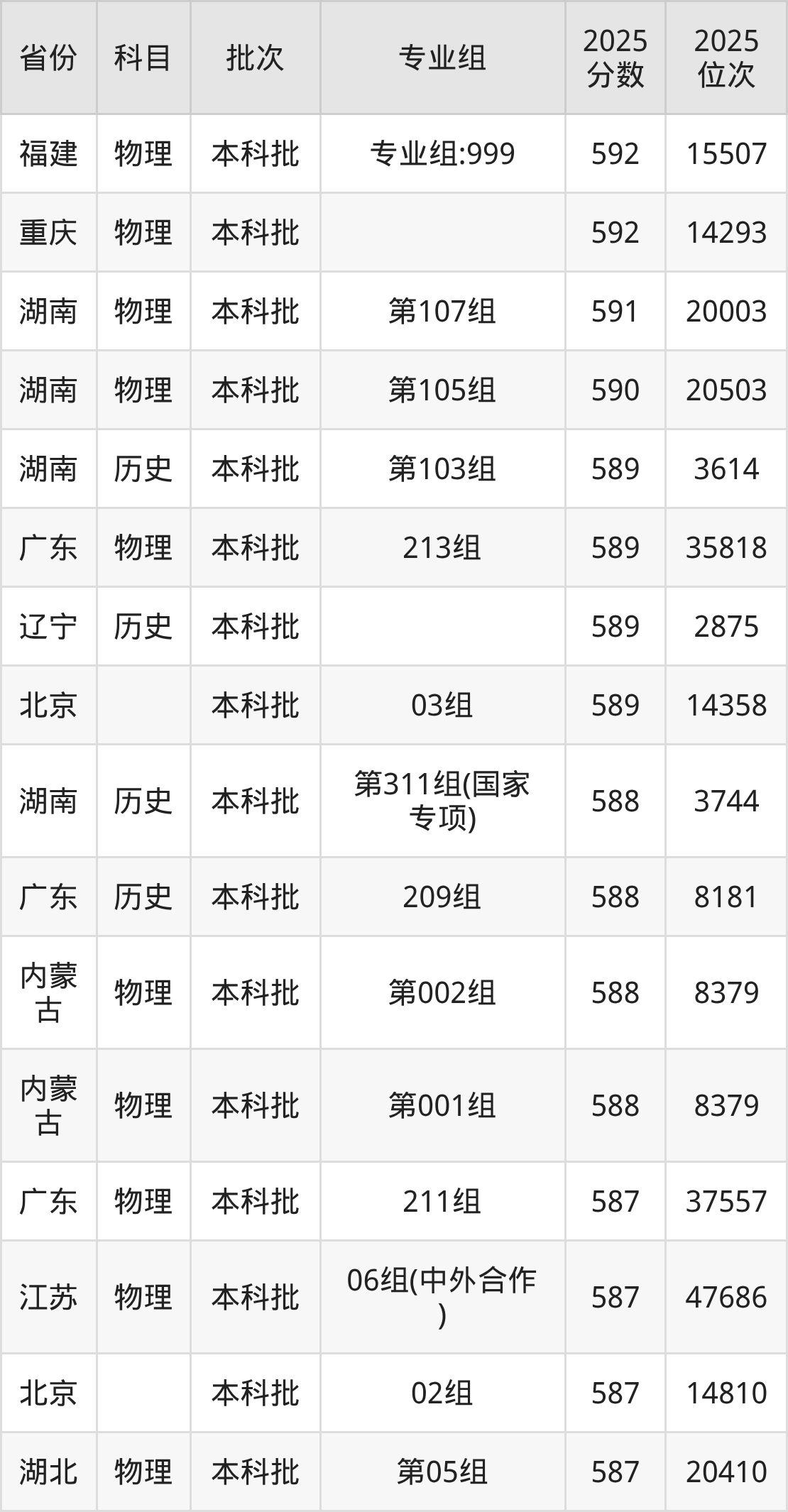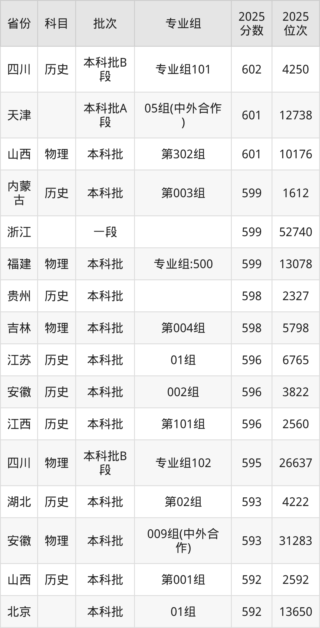 24、物理学类:596分、位次27396名;