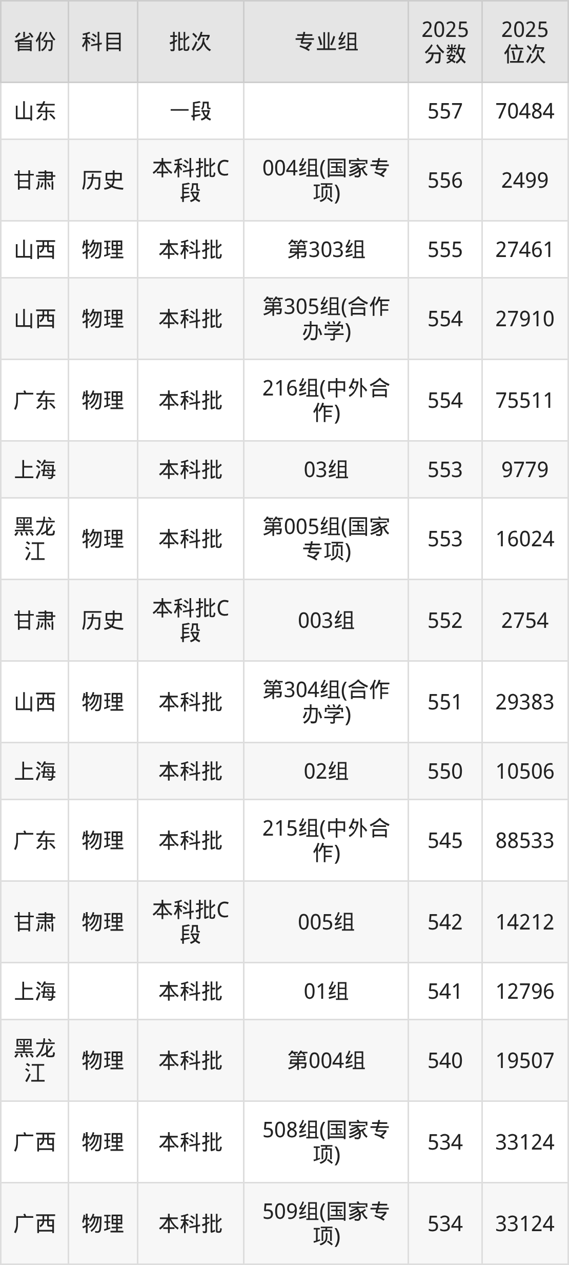 参考2025年山东省高考招录数据,按照分数线从高到低依次为大家展示中国矿业大学各个专业录取分数线。