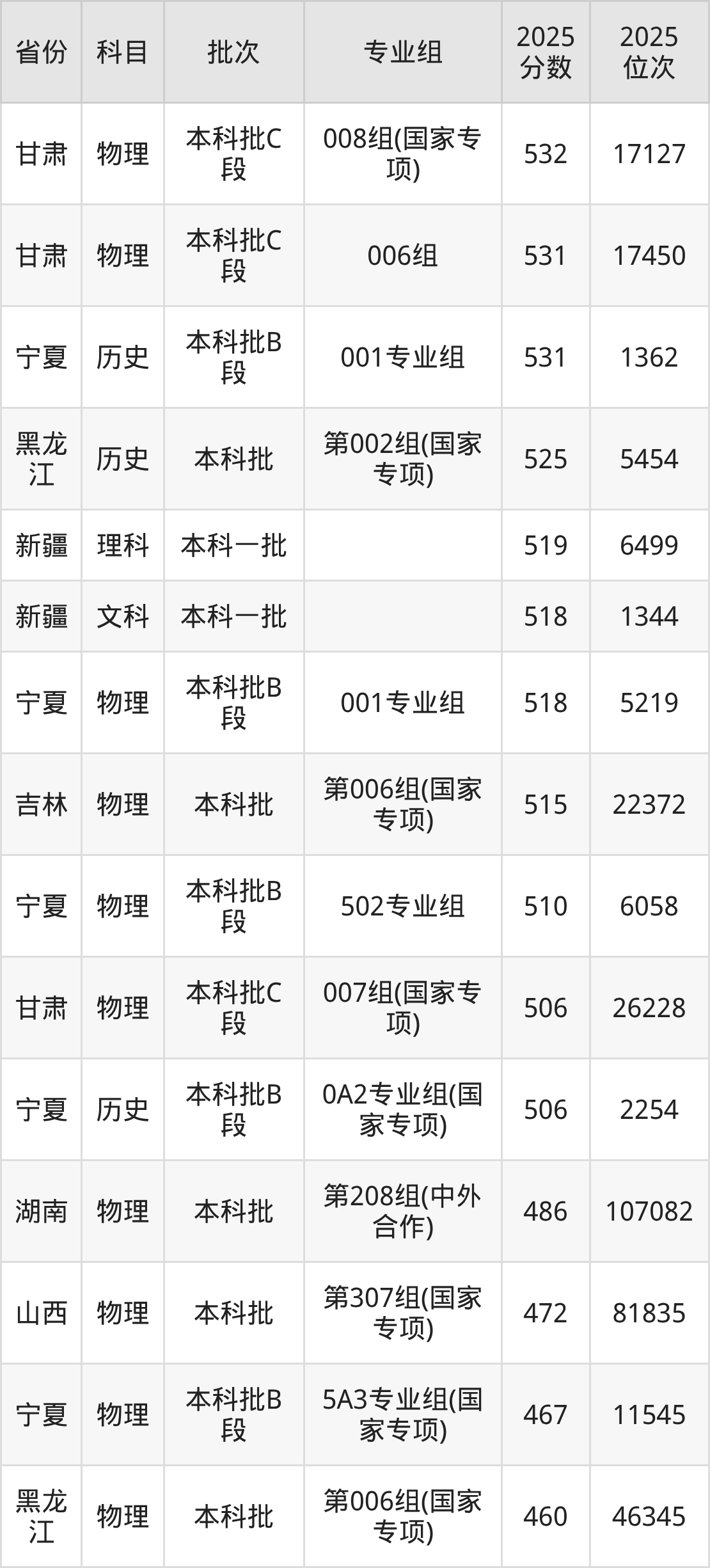 一、中国矿业大学2025年专业录取分数线