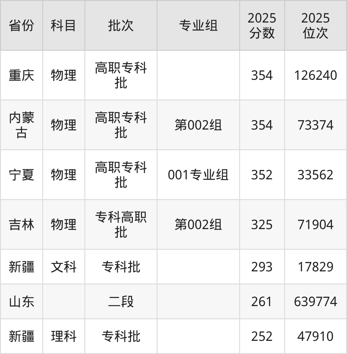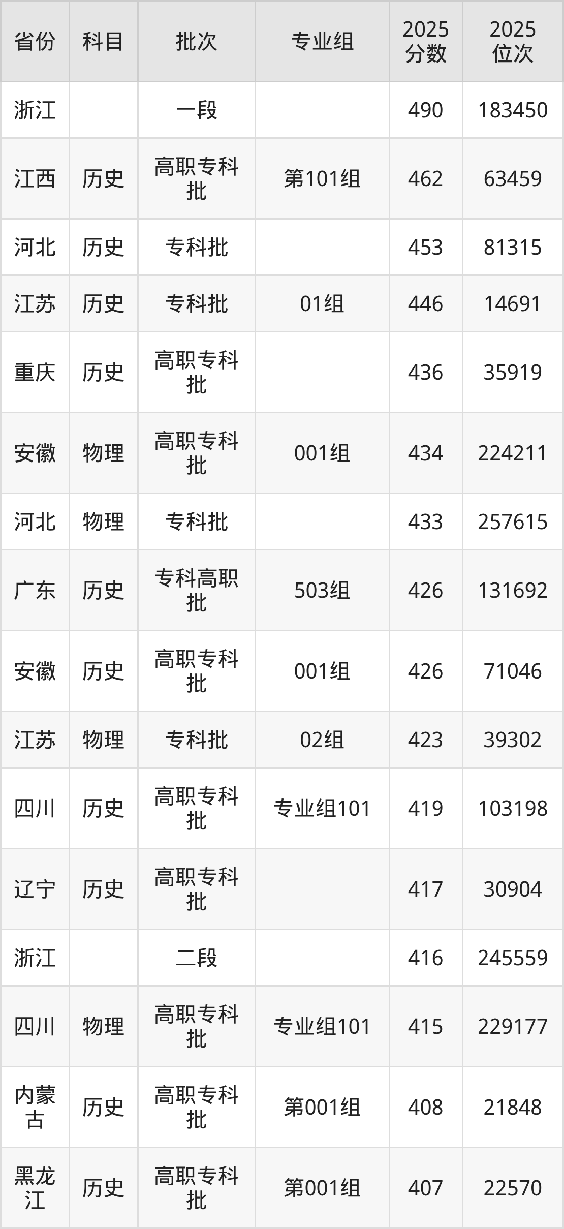 2025年日照职业技术学院全国录取分数线252分到490分,录取最高在浙江、录取最低在新疆(理科)。