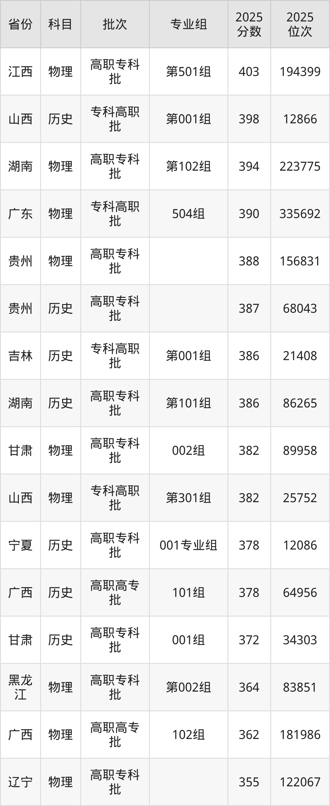 59、软件技术(高职院校专项计划):383分、位次458021名;