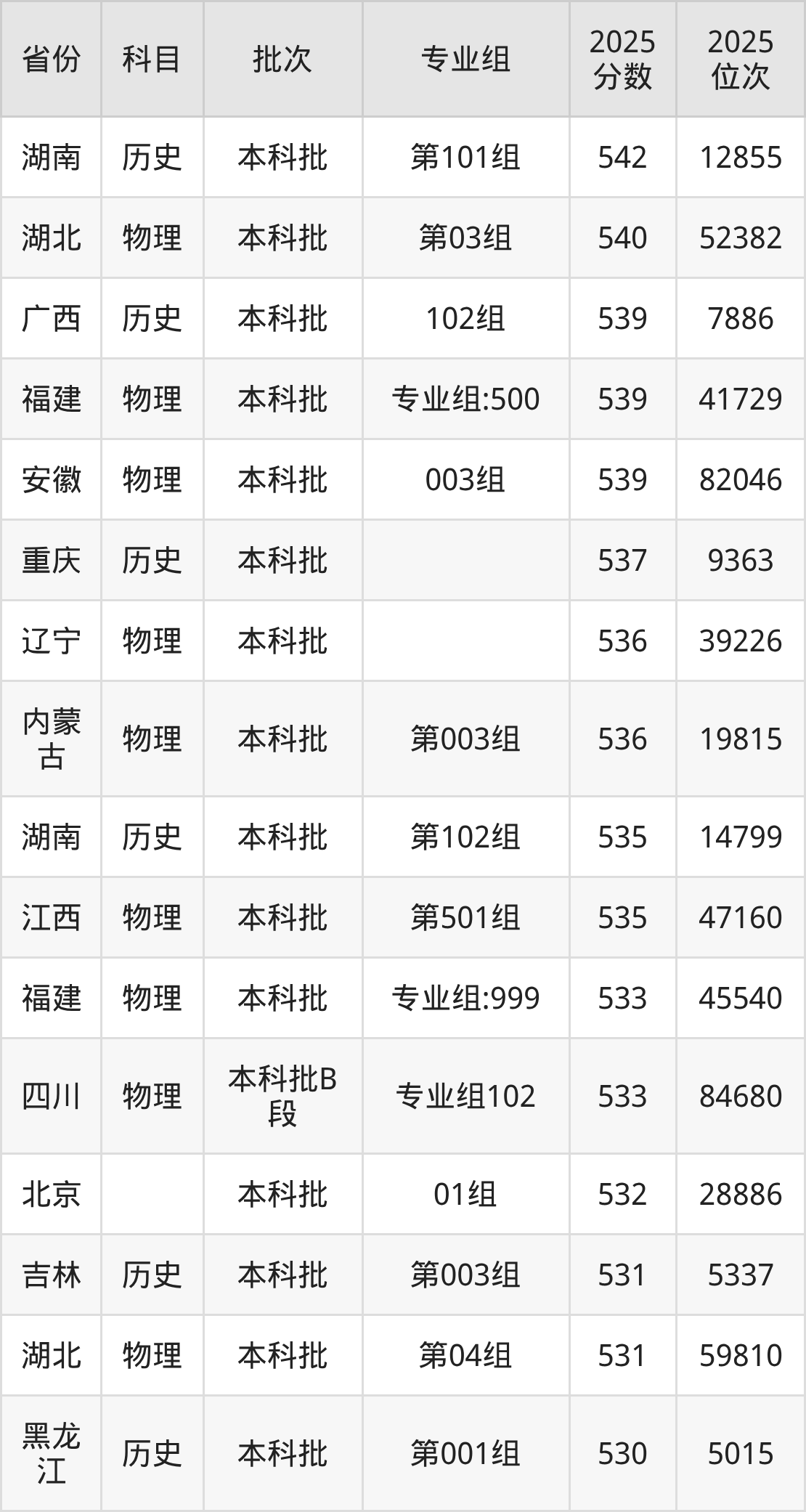 25、信息安全(文翰卓越班):529分、位次119994名;