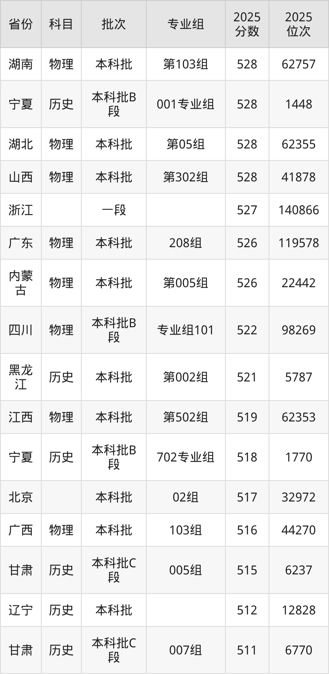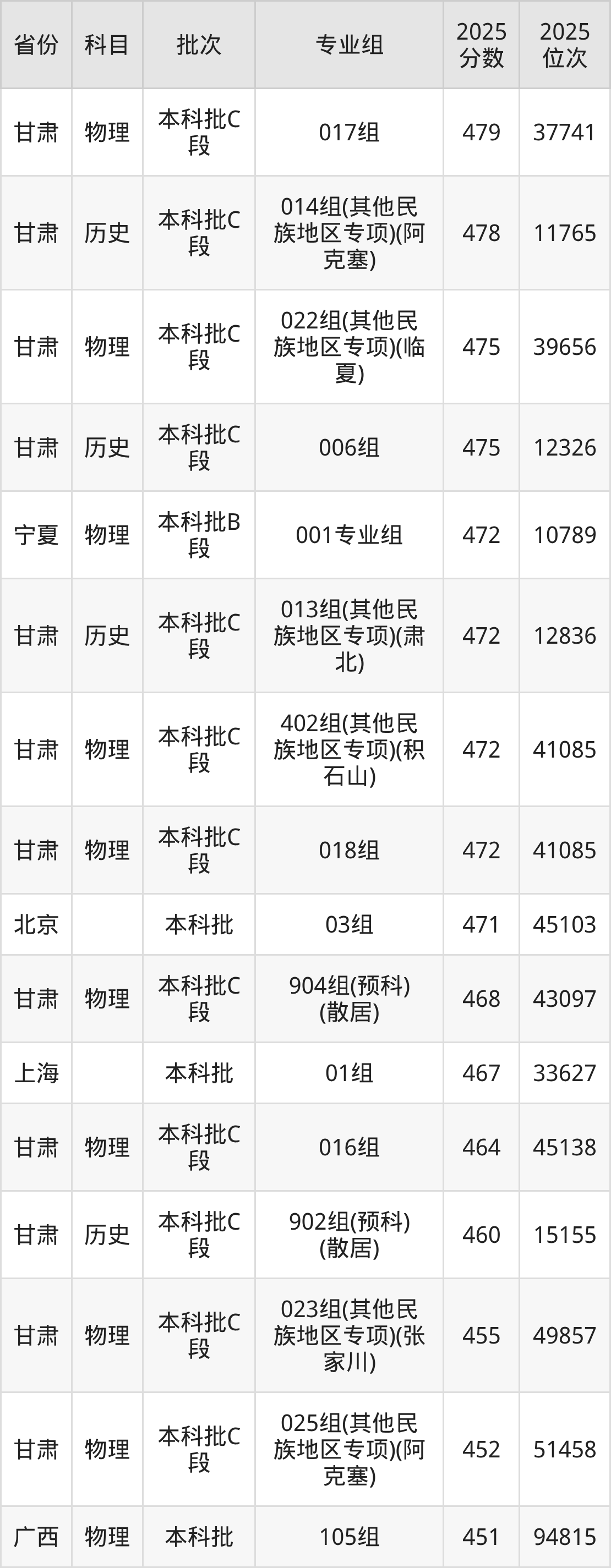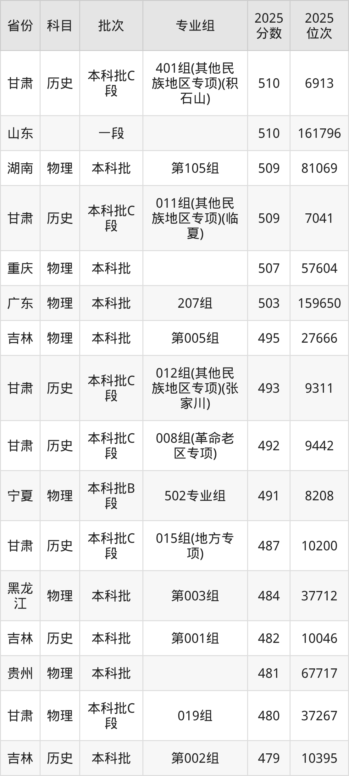 下面是2025年甘肃政法大学在全国各省录取最低分数据及位次,各位考生也可作为一个参考。