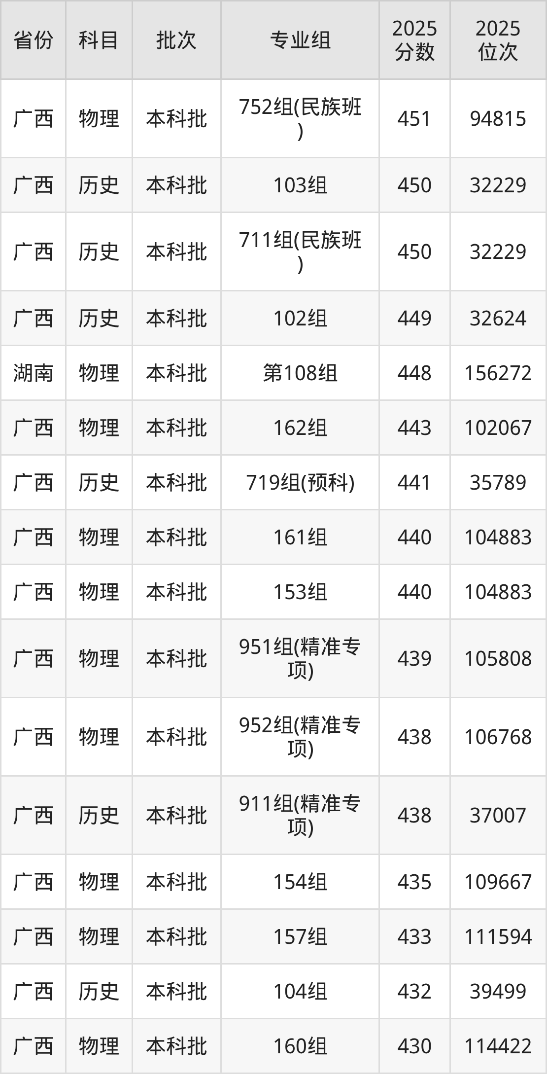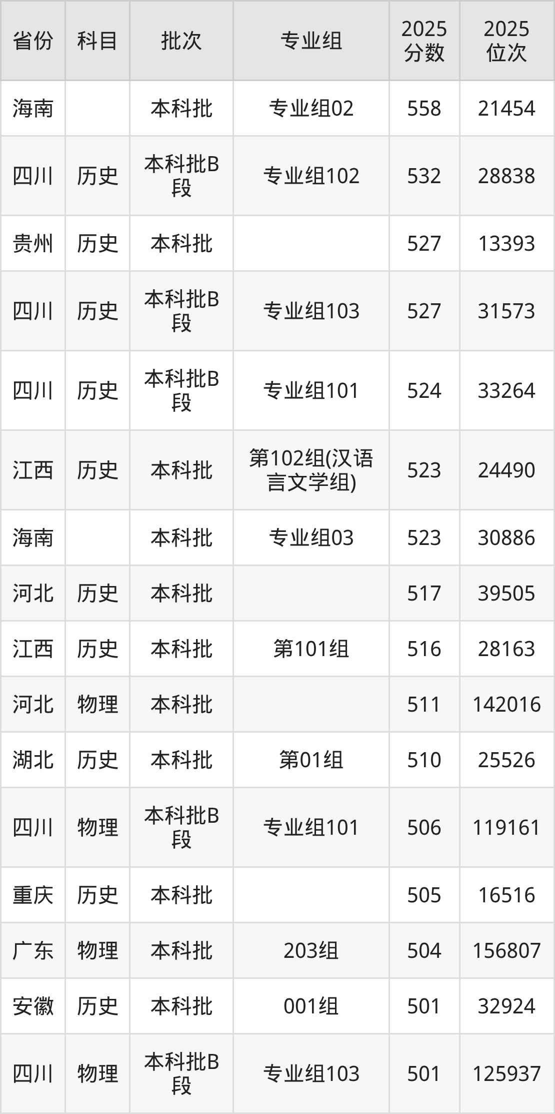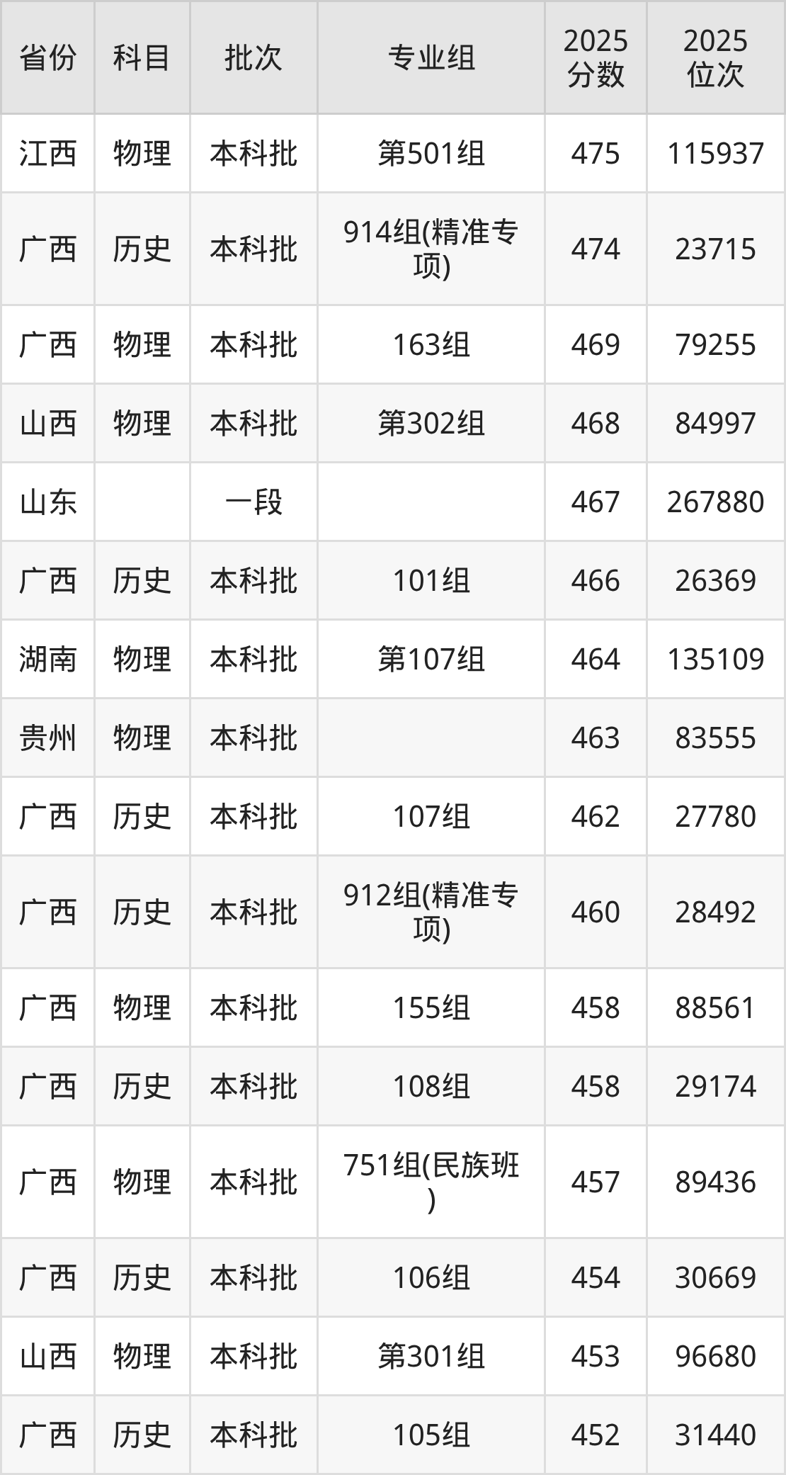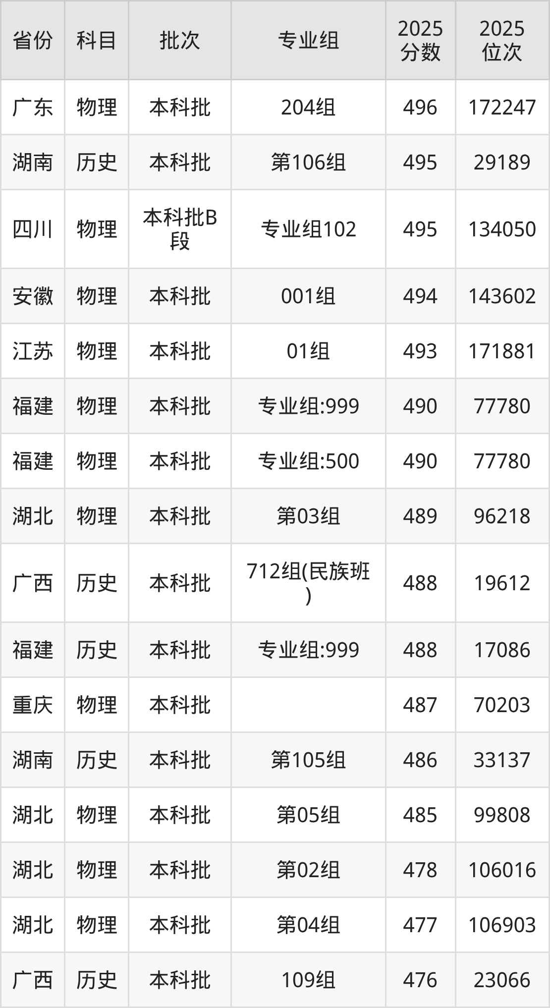 下面是2025年河池学院在全国各省录取最低分数据及位次,各位考生也可作为一个参考。