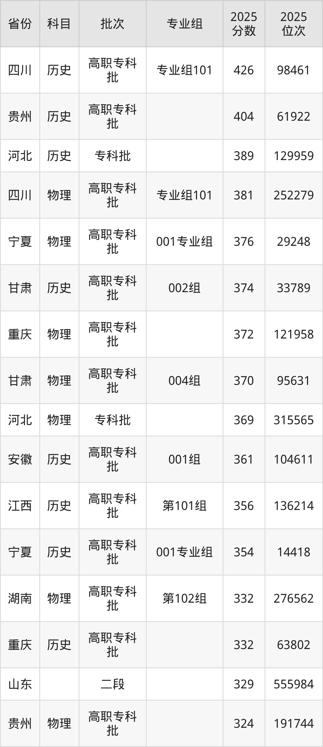 参考2025年山东省高考招录数据,按照分数线从高到低依次为大家展示新疆生产建设兵团兴新职业技术学院各个专业录取分数线。