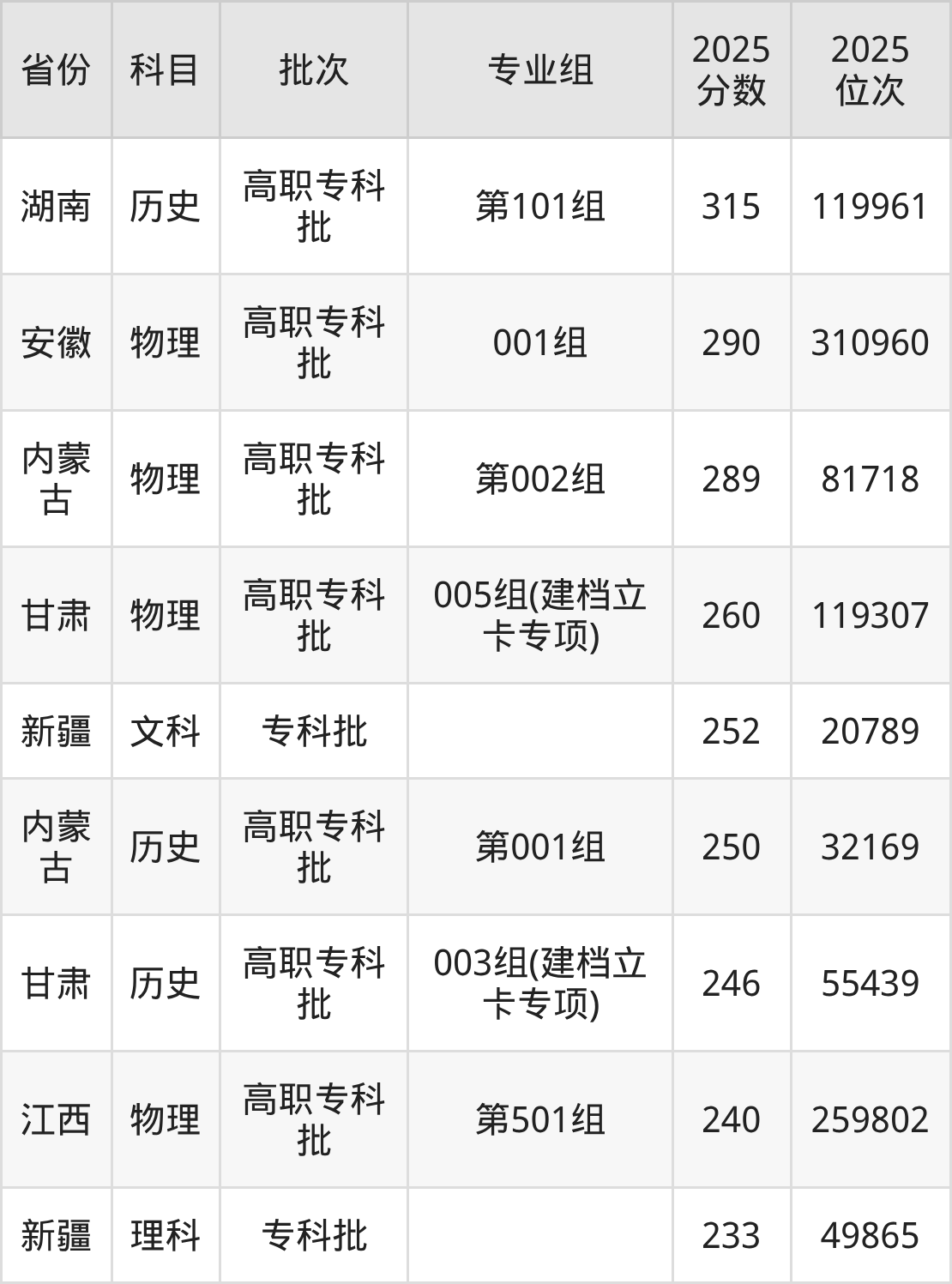下面是2025年新疆生产建设兵团兴新职业技术学院在全国各省录取最低分数据及位次,各位考生也可作为一个参考。
